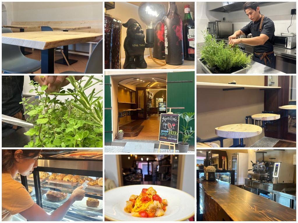 Aperti dalle 7 alle 22 , instancabili, offrono alla clientela una scelta variegata: dalla colazione alla cena. Rispettosi della storia hanno realizzato un locale dai colori tenui legati dalle venature del legno, abilmente lavorato da professionisti locali.