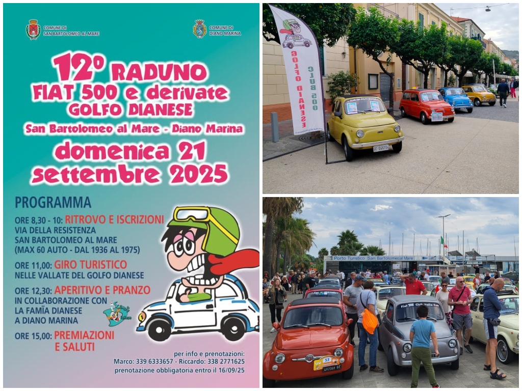 Una domenica interamente dedicata alla passione per i motori d’epoca, in particolare per l’iconica Fiat 500 e le sue amate derivate. A San Bartolomeo e Diano Marina, gli appassionati sono pronti a vivere la dodicesima edizione di un raduno che promette di essere un vero e proprio tuffo nel passato, tra rombi di motori e paesaggi mozzafiato. L’evento, già attesissimo, si svolgerà domani domenica 21 settembre con un programma ricco e coinvolgente, pensato per regalare emozioni sia ai partecipanti che al pubblico.
