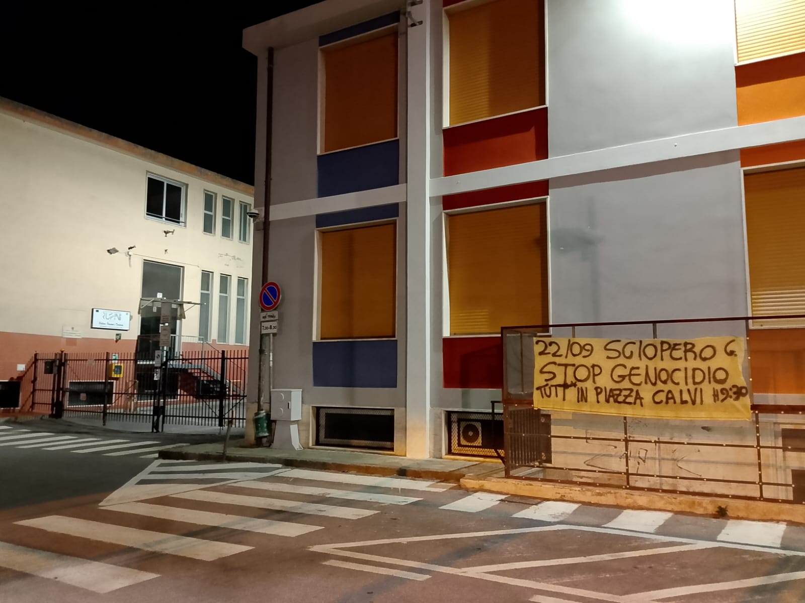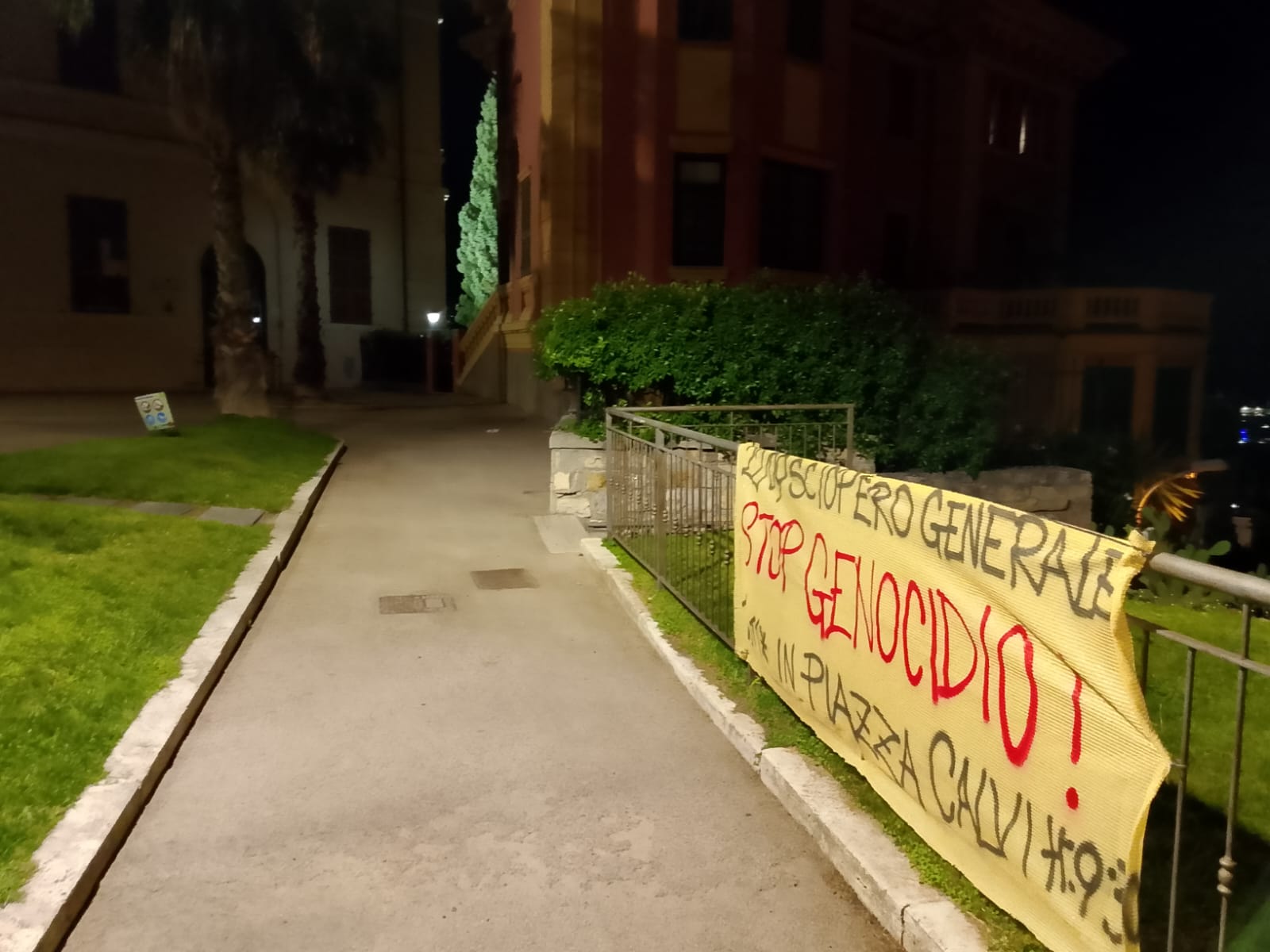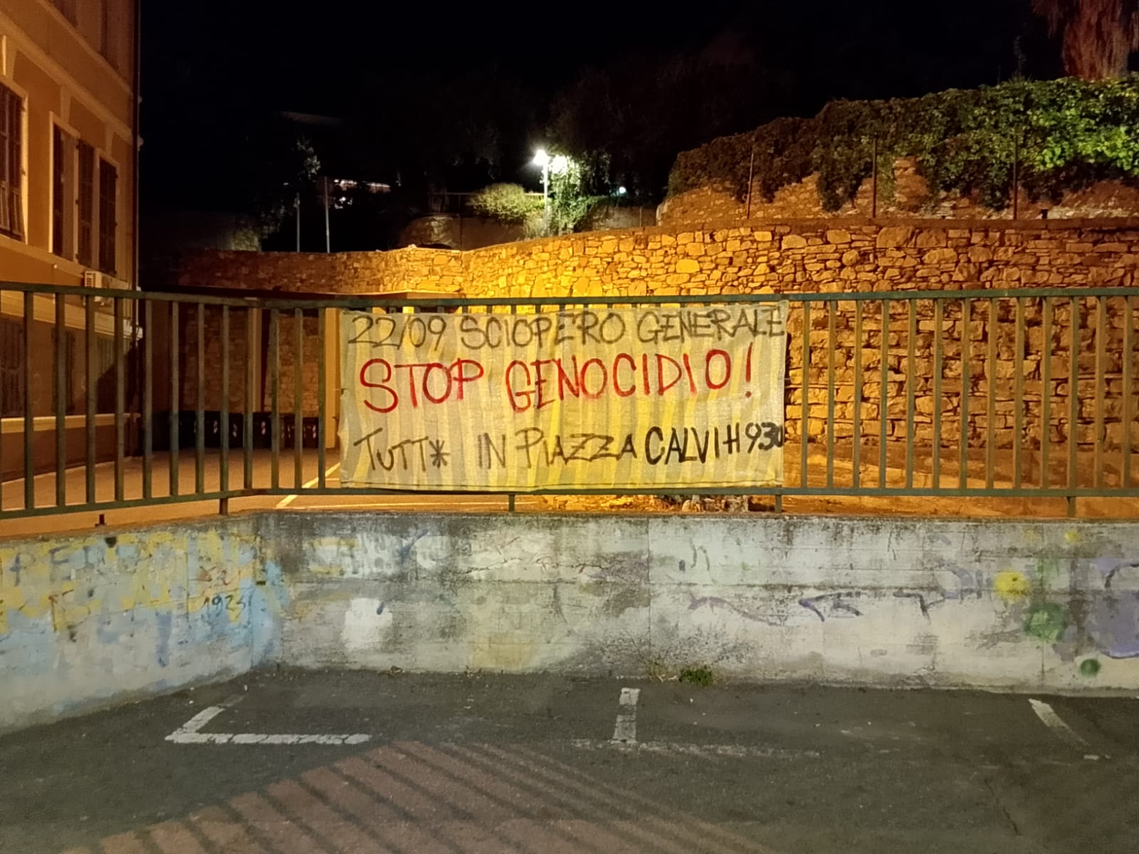 La città di Imperia si è risvegliata questa mattina con numerosi striscioni apparsi durante la notte. I messaggi, con la scritta “Stop Genocidio – Tutti in piazza Calvi, ore 9.30“, sono stati posizionati nei pressi del ponte Impero e all’ingresso di alcune scuole di Porto Maurizio e Oneglia.