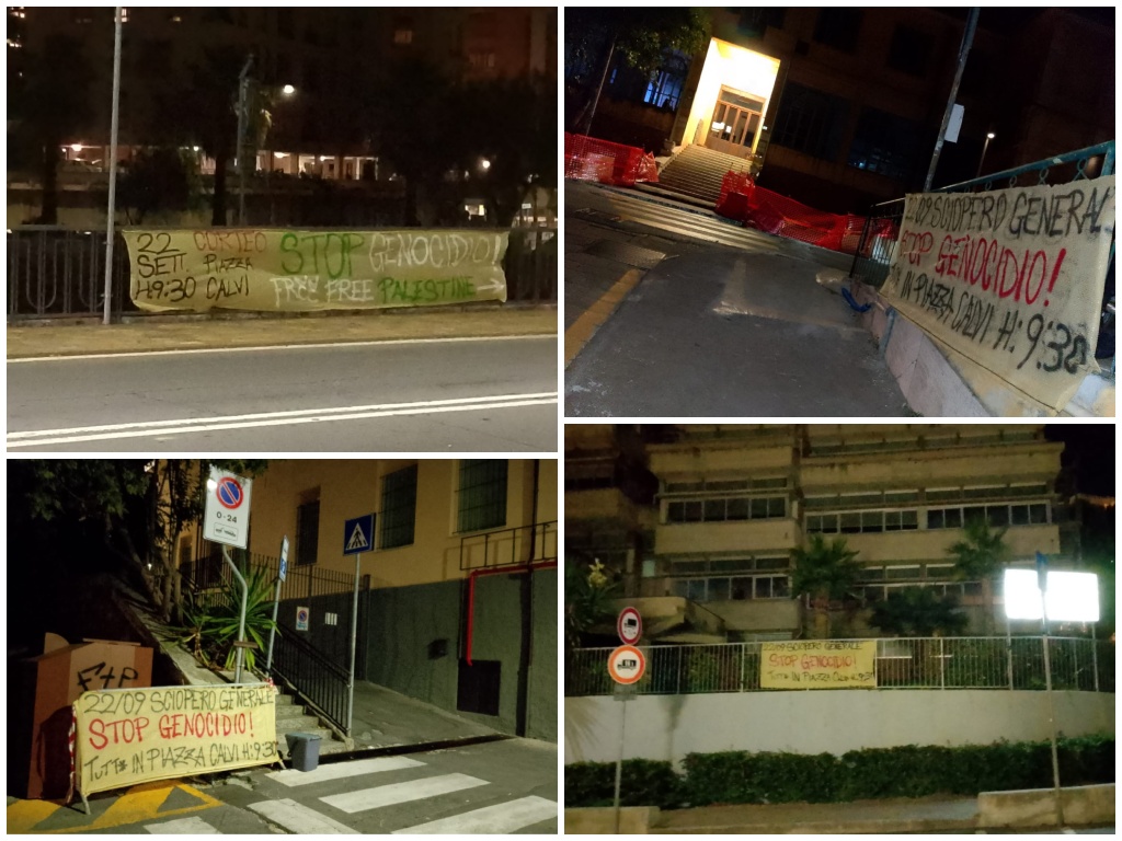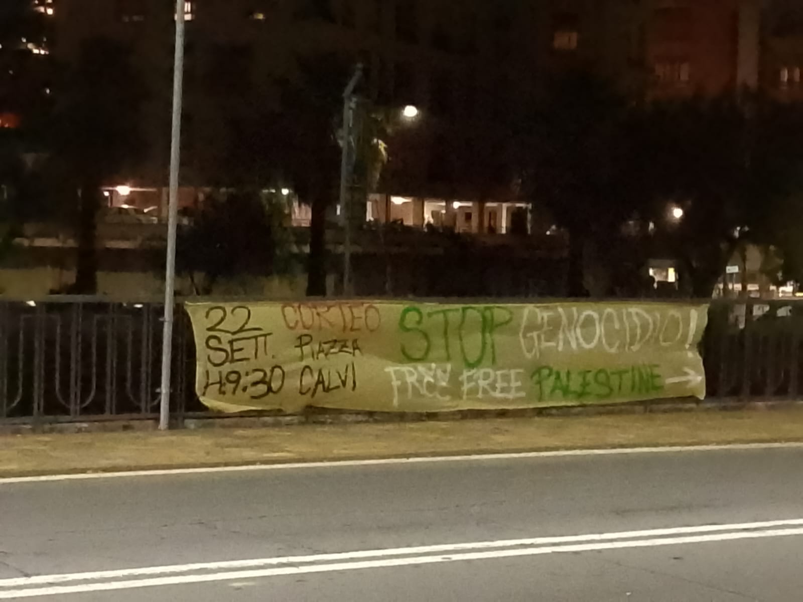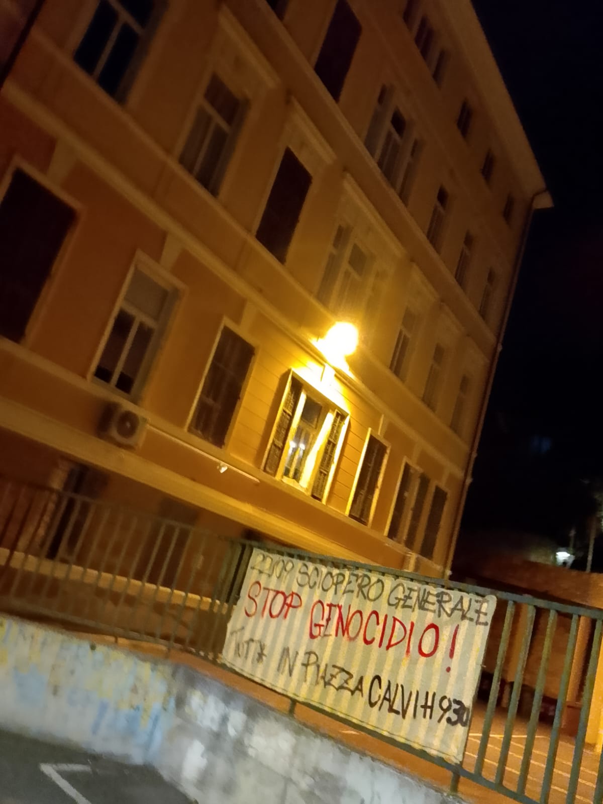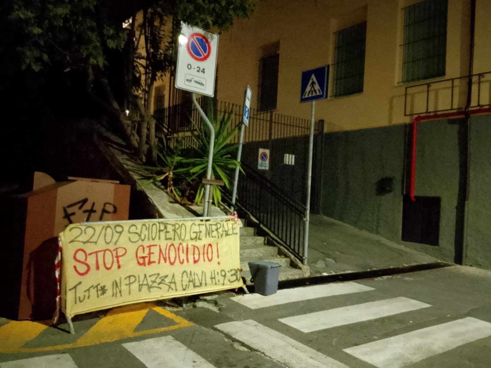 La città di Imperia si è risvegliata questa mattina con numerosi striscioni apparsi durante la notte. I messaggi, con la scritta “Stop Genocidio – Tutti in piazza Calvi, ore 9.30“, sono stati posizionati nei pressi del ponte Impero e all’ingresso di alcune scuole di Porto Maurizio e Oneglia.