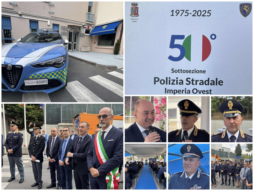 La sottosezione della Polizia stradale di Imperia Ovest ha festeggiato oggi i 50 anni dalla sua costituzione con una cerimonia che ha visto la presenza della massime autorità locali, svoltasi nel piazzale della caserma dedicata alle guardie di P.S. Giampiero Capone e Marco Guidone, caduti in servizio poco tempo dopo la nascita della sede.