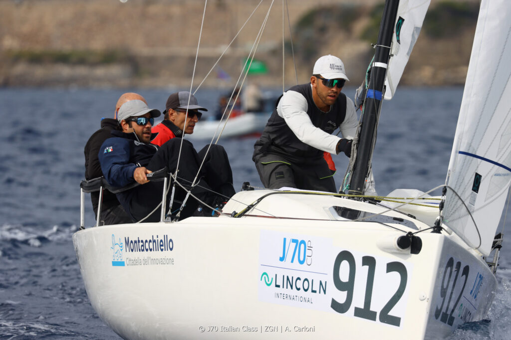 Seconda posizione per Notaro Team di Luca Domenici, al rientro nella classe per difendere il titolo italiano conquistato lo scorso anno a Lerici. Con un equipaggio collaudato, composto da Diego Negri, Michele Mennuti e Davide Bortoletto, Domenici ha chiuso la giornata con i parziali 7-5-4, dimostrando solidità e continuità di nuovo a bordo del J/70.