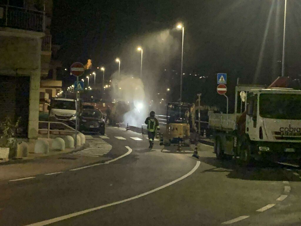 Vigili del Fuoco in azione questa sera sull’Argine Destro, a Oneglia, a causa di una fuga di gas. Secondo una prima ricostruzione una ruspa al lavoro nel cantiere che da settimane è attivo nella via avrebbe tranciato di netto una condotta principale, causando una copiosa fuoriuscita di gas.
