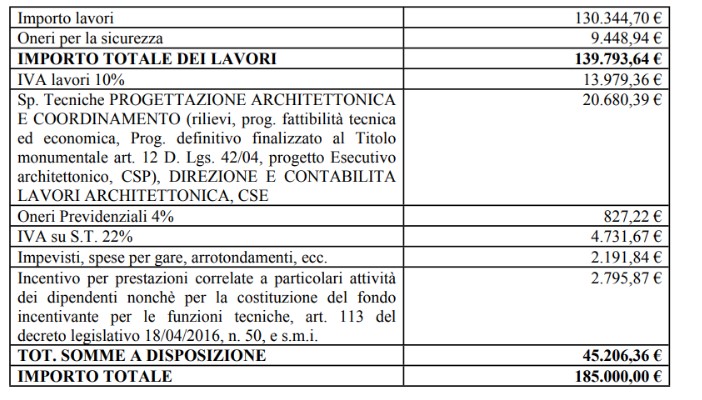 La spesa per il restauro è ripartita per il 60% a carico della Provincia e per il 40% a carico di Invimit SGR s.p.a., proprietaria di una porzione dell’immobile.