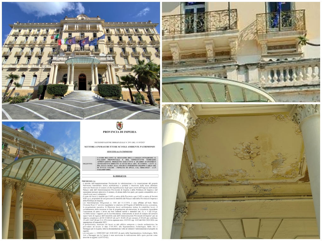 Con una determina dello scorso 13 ottobre, firmata dal dirigente Mauro Balestra, la Provincia di Imperia ha ufficialmente approvato il progetto esecutivo e il quadro economico per i lavori di restauro del palazzo che ospita la sede dello stesso Ente e della Prefettura.