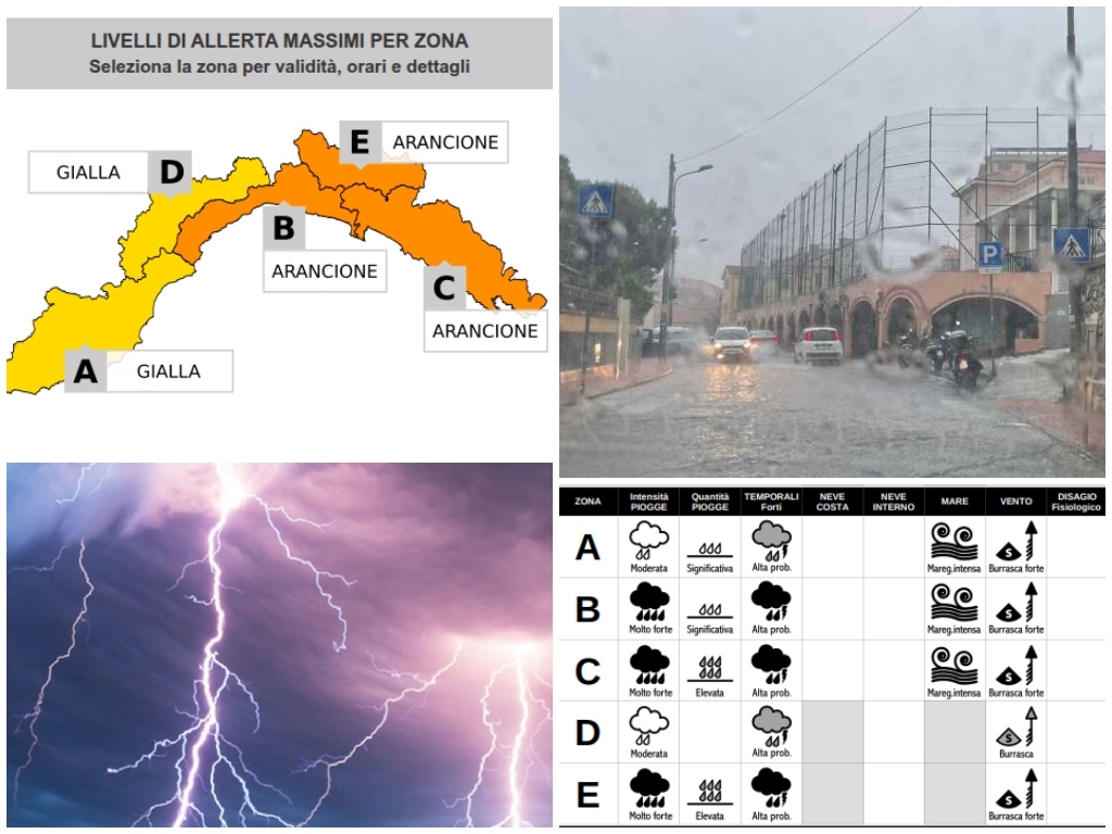 I FENOMENI: Oltre ai temporali “forti organizzati e stazionari” gli altri fenomeni rilevanti sono le raffiche di notevole intensità (raffica di 120 km/h a Casoni di Suvero, 80km/h a Borzonasca) e la mareggiata – caratterizzata da onda lunga e penetrante – che persisterà per tutta la giornata di domani su gran parte della costa ligure.