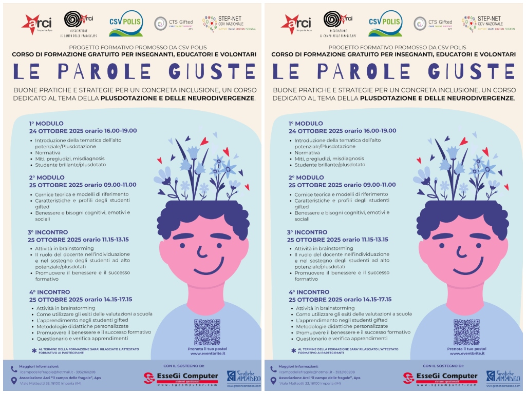 L’iniziativa è organizzata da CTS Gifted APS, ente accreditato al MIM per la formazione, e