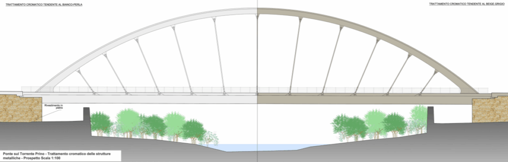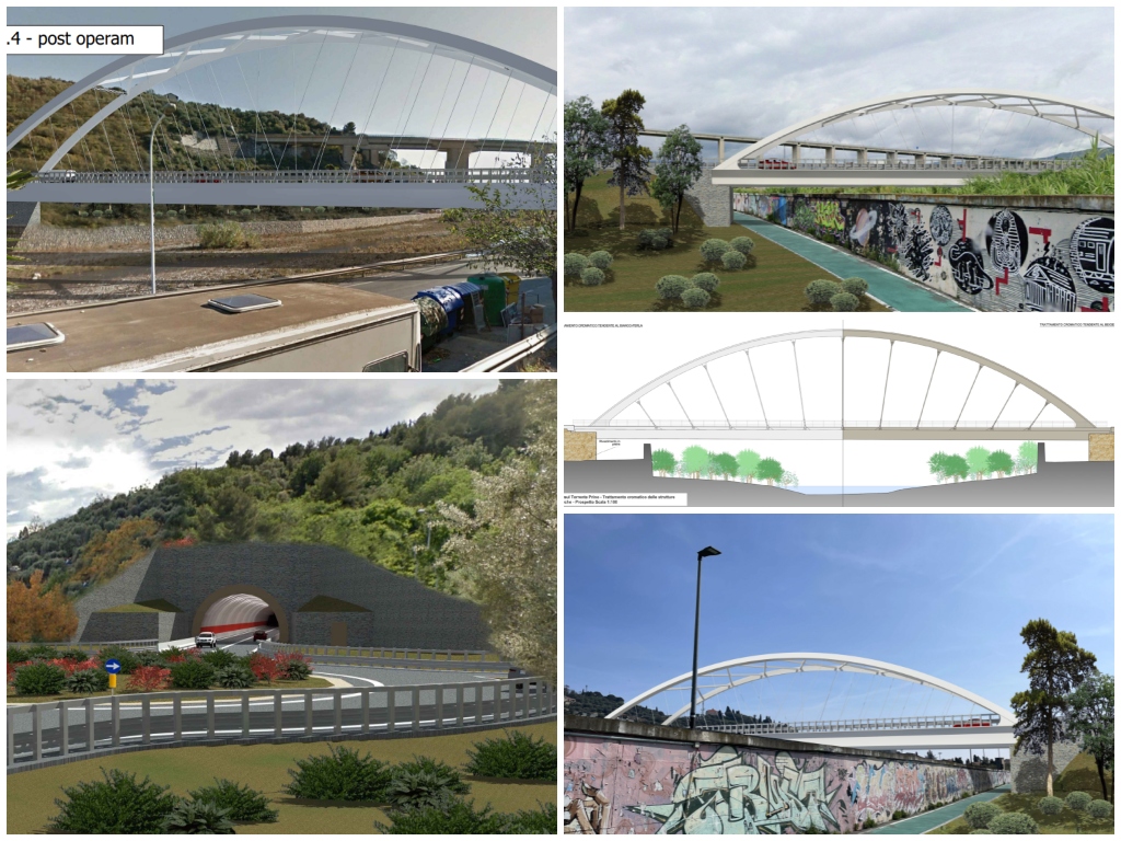 Tra gli elementi di maggior rilievo del progetto definitivo spiccano i rendering del nuovo viadotto sul torrente Prino. La nuova configurazione permette inoltre di lasciare aperta la possibilità di un futuro prolungamento della variante verso ponente.