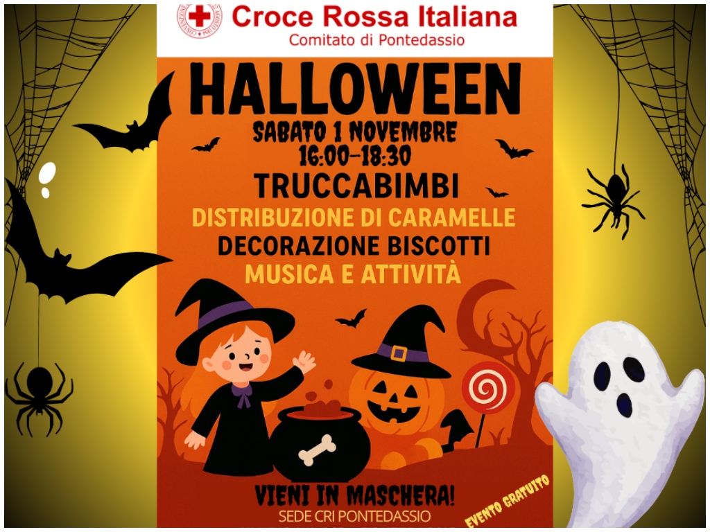 Sabato 1° novembre dalle 16 alle 18,30, la sede della Croce Rossa di Pontedassio (in via Pio XII 1/A) sarà allestita a tema per la grande festa di Halloween per i bambini organizzata dal Comitato di Pontedassio.