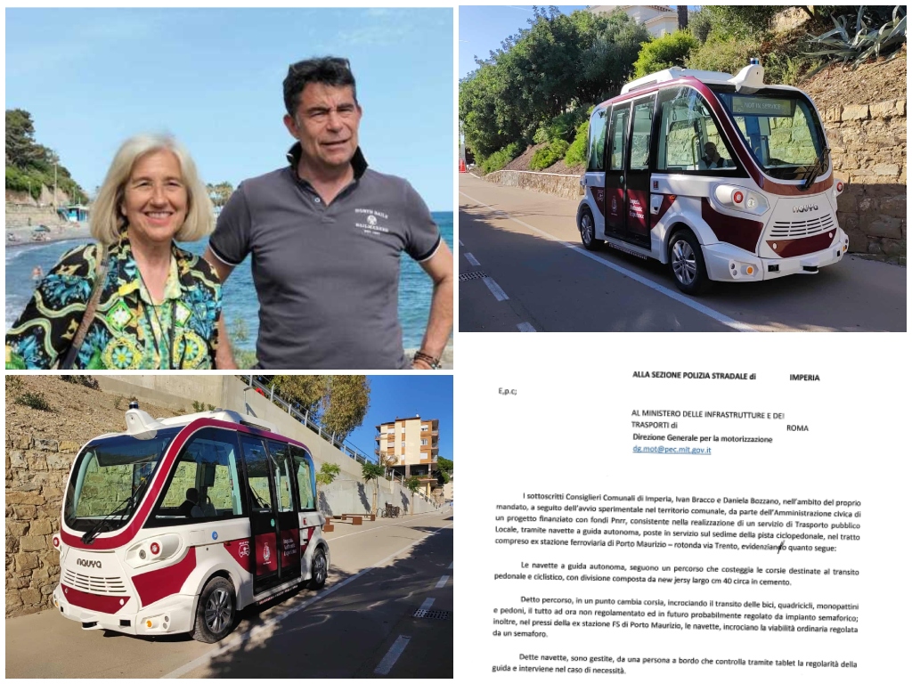I consiglieri comunali di minoranza Ivan Bracco e Daniela Bozzano (PD) hanno inviato una segnalazione alla Sezione Polizia Stradale di Imperia e al Ministero delle Infrastrutture e dei Trasporti, in merito al progetto sperimentale delle navette a guida autonoma attivate lungo la pista ciclopedonale, tra l’ex stazione ferroviaria di Porto Maurizio e la rotonda di via Trento.