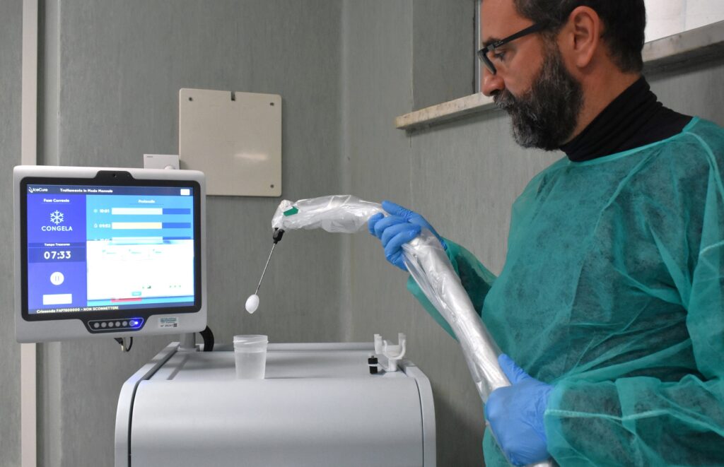 La procedura consiste nell’inserimento, sotto guida ecografica, di una sottile sonda percutanea che, una volta raggiunto il tumore, rilascia una carica refrigerante. Si forma così una vera e propria “palla di ghiaccio” che congela e distrugge le cellule tumorali in modo sicuro, preciso ed efficace.