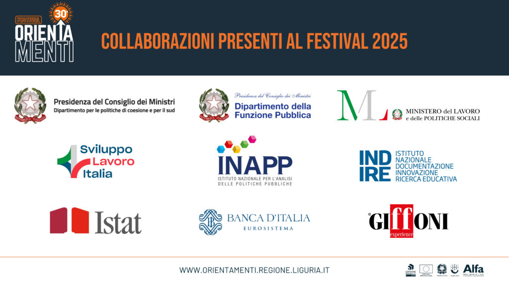 Convegni, workshop e laboratori saranno inoltre promossi dal Ministero del Lavoro e delle Politiche Sociali, dal Ministero della Pubblica Amministrazione, da ISTAT, Inapp, Sviluppo Lavoro Italia e dal Dipartimento per le Politiche di Coesione della Presidenza del Consiglio dei Ministri. Al fianco delle istituzioni sarà presente anche il Giffoni Film Festival, con il suo contributo creativo e culturale.
