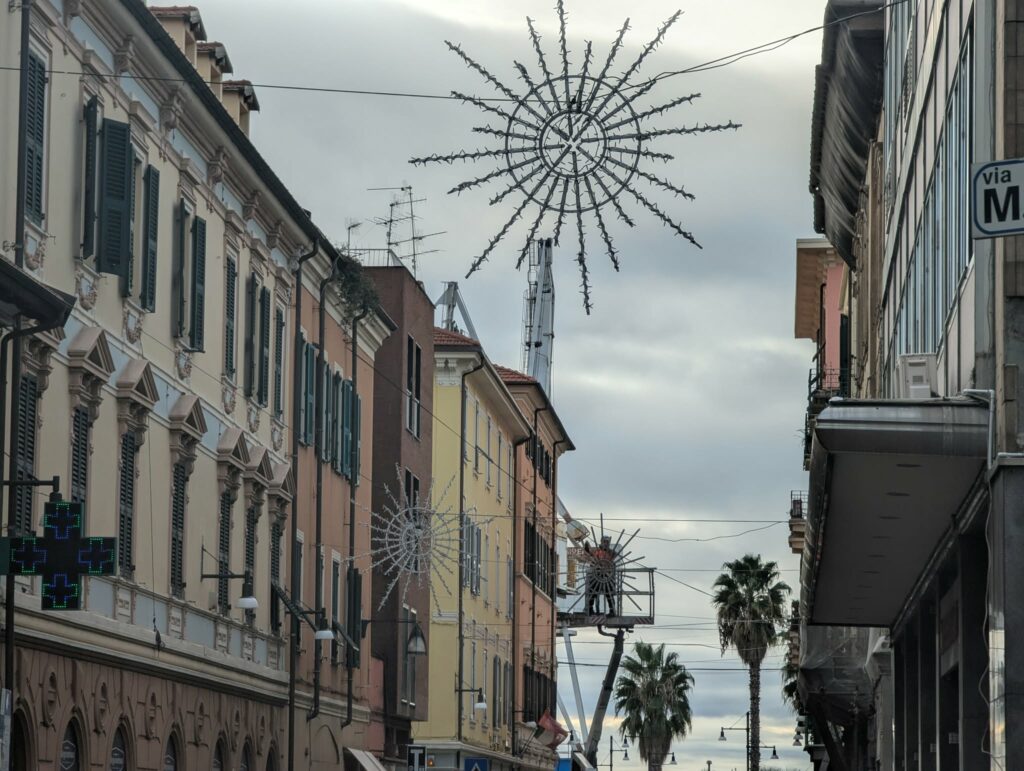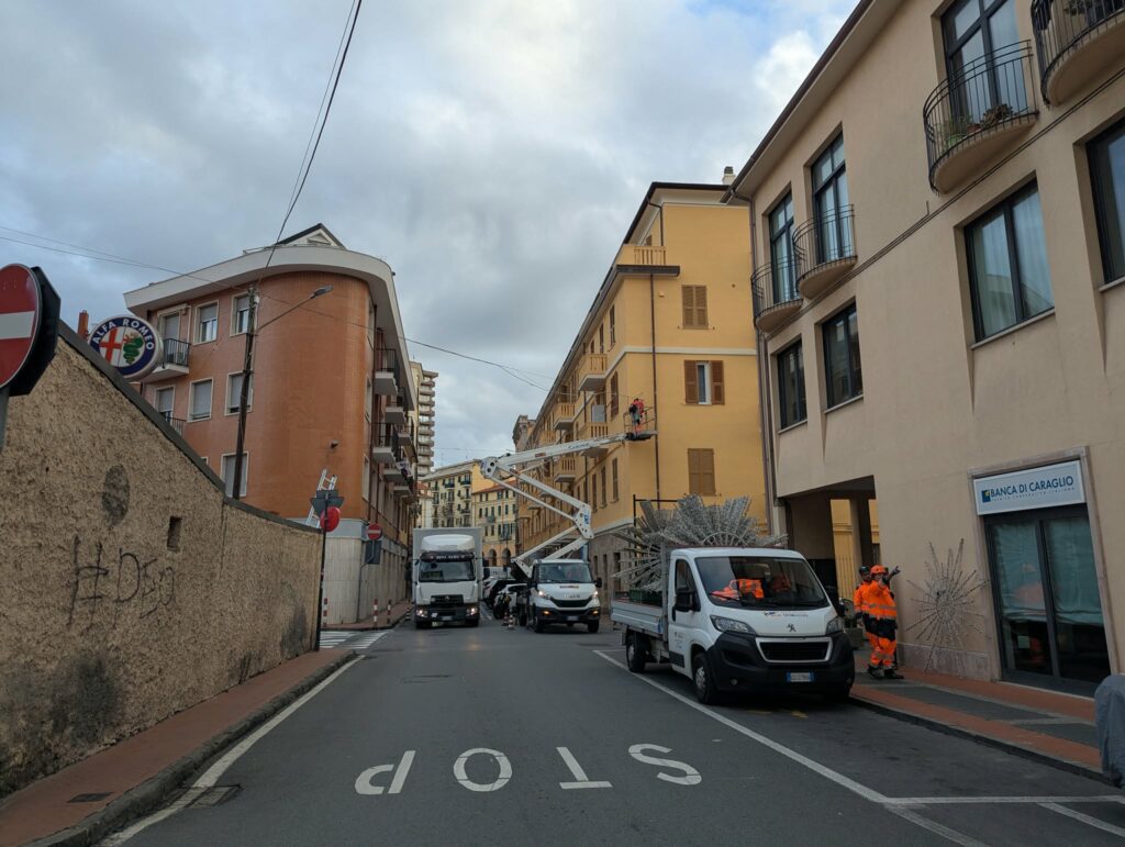 Puntuale come ogni anno, Imperia inizia a vestirsi di luci. Da questa mattina, 31 ottobre, sono partiti i lavori per l’installazione delle luminarie natalizie in città, con gli operai al lavoro nel centro di Oneglia tra Piazza Dante, via Belgrano e via Alfieri.
