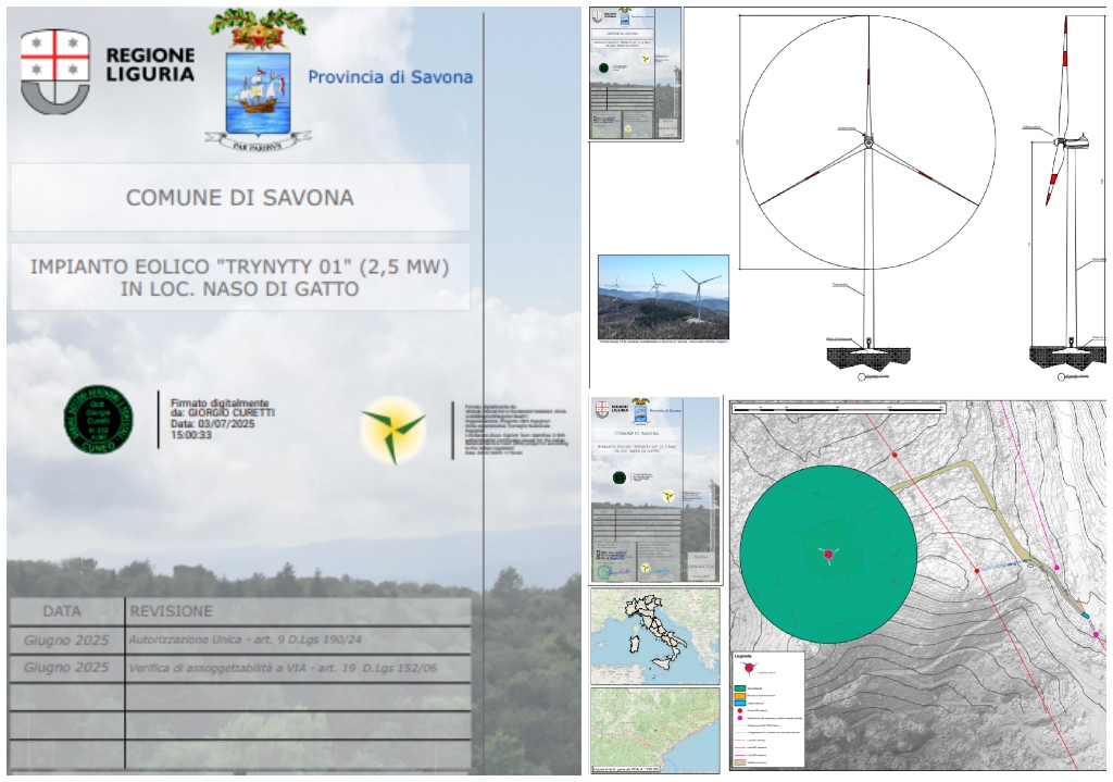 Si tratta del progetto “Trynyty 01”, che prevede l’installazione di un singolo aerogeneratore da 2,5 MW in località Naso di Gatto, nel comune di Savona