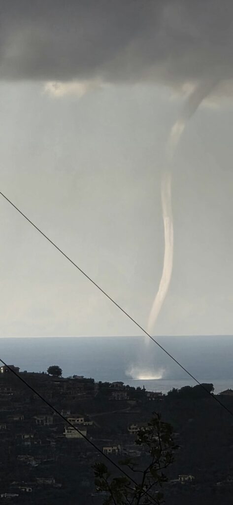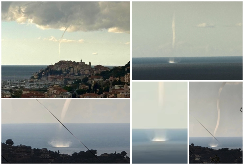 Spettacolare fenomeno atmosferico questa mattina sulla costa imperiese. Un‘imponente tromba marina si è formata al largo, percorrendo una vasta porzione di litorale prima di dissolversi.