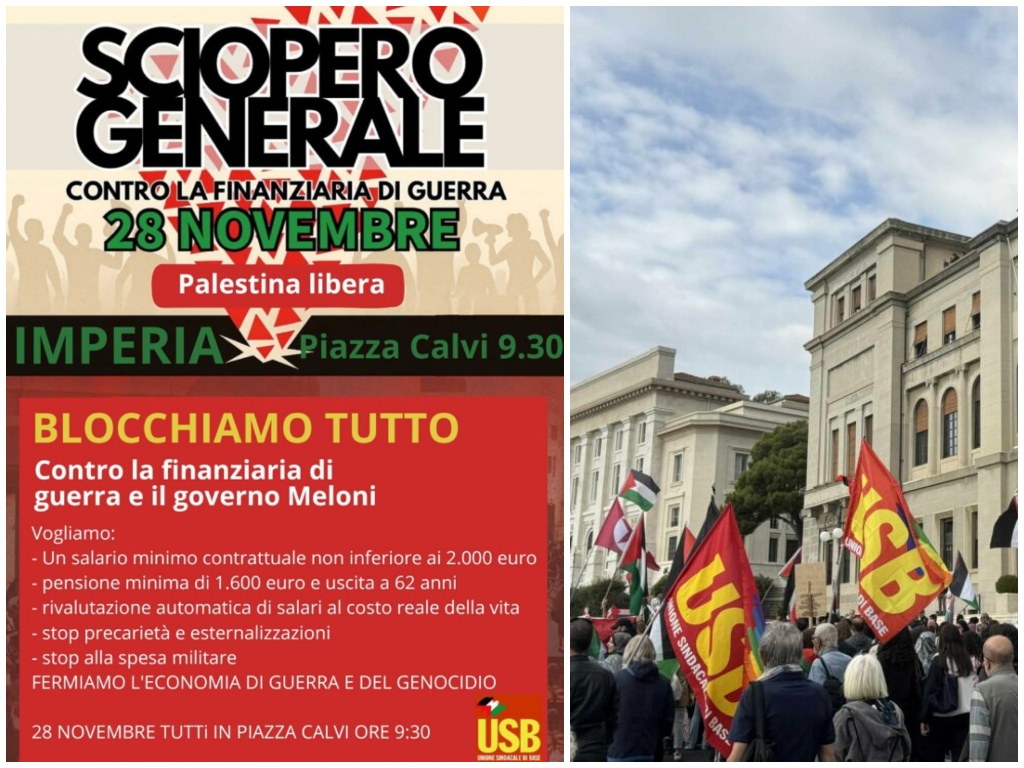 La USB Imperia annuncia la propria adesione allo sciopero generale proclamato per venerdì 28, con una mobilitazione prevista anche nel capoluogo. Il sindacato rende noto che l’appuntamento cittadino sarà in piazza Ulisse Calvi alle ore 9.30, dove iscritti e simpatizzanti si riuniranno per manifestare su temi legati al lavoro, alla spesa sociale e alla politica nazionale e internazionale.
