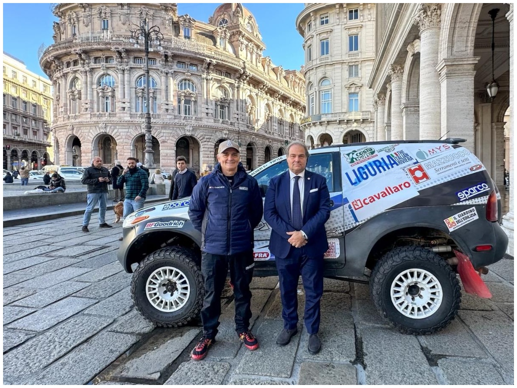 “La Dakar è una sfida straordinaria e un palcoscenico mondiale: avere una vettura che porta in alto il nome della Liguria significa valorizzare la nostra identità e le nostre eccellenze davanti a un pubblico internazionale, proprio in un anno in cui siamo Regione Europea dello Sport. È un’occasione preziosa di promozione e un grande orgoglio vedere un equipaggio ligure rappresentare la nostra terra con passione e determinazione“, ha detto l’assessore regionale allo Sport Simona Ferro.