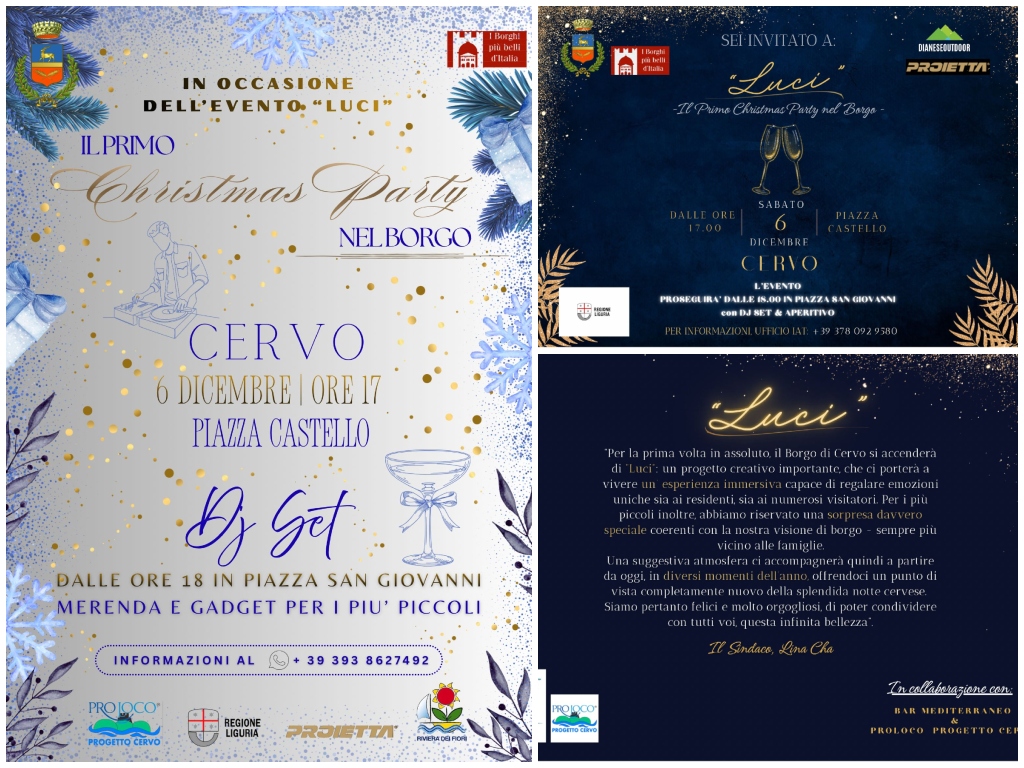 “Per la prima volta in assoluto, il Borgo di Cervo si accenderà di ‘Luci’: un progetto creativo importante, che ci porterà a vivere un’esperienza immersiva capace di regalare emozioni uniche sia ai residenti, sia ai numerosi visitatori. Per i più piccoli inoltre, abbiamo riservato una sorpresa davvero speciale coerenti con la nostra visione di borgo – sempre più vicino alle famiglie. Una suggestiva atmosfera ci accompagnerà in diversi momenti dell’anno, offrendoci un punto di vista completamente nuovo della splendida notte cervese”, ha commentato il sindaco Lina Cha.