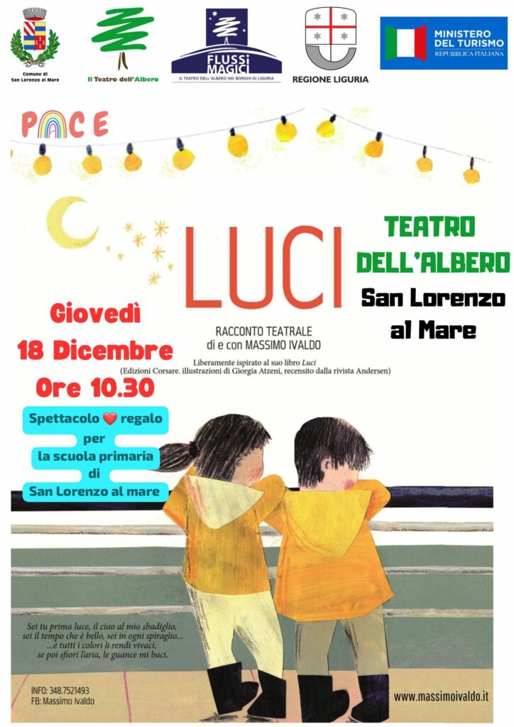 Giovedì 18 dicembre, “LUCI” spettacolo di Massimo Ivaldo, autore, attore e regista, tratto dall’omonimo libro, spettacolo per la scuola primaria – ore 11 sala Beckett
