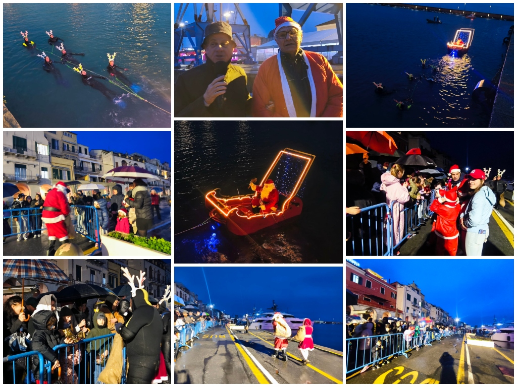 Nonostante la pioggia che sta caratterizzando questi giorni di festa, tantissime persone si sono radunate alle ore 17.00 per assistere all’arrivo spettacolare di Babbo Natale sub, che ha distribuito dolciumi e regali ai più piccoli.