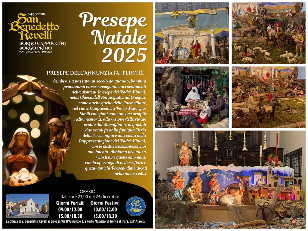 Nel tempo santo del Natale, la comunità parrocchiale di San Benedetto Revelli, a Porto Maurizio, offre ai fedeli e alla città un’occasione preziosa di contemplazione e memoria con il Presepe Natalizio 2025, intitolato “Presepe dell’Annunziata… perché…”.