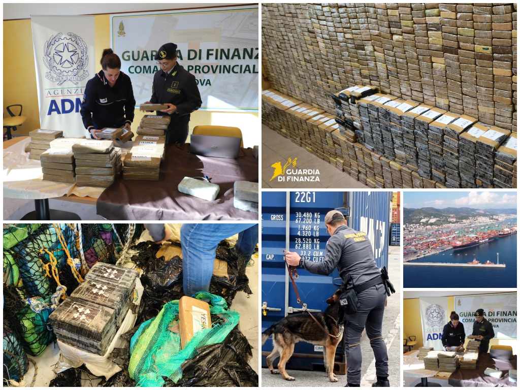 I finanzieri del Comando Provinciale di Genova e i funzionari del Reparto Antifrode dell’Agenzia delle Dogane e dei Monopoli di Genova hanno sequestrato, presso il bacino portuale di Sampierdarena, 2.109 panetti contenenti, al lordo del confezionamento, un quantitativo complessivo di oltre 2 tonnellate di sostanza stupefacente che, a seguito di analisi speditiva effettuata al momento del controllo, è risultata essere cocaina purissima.
