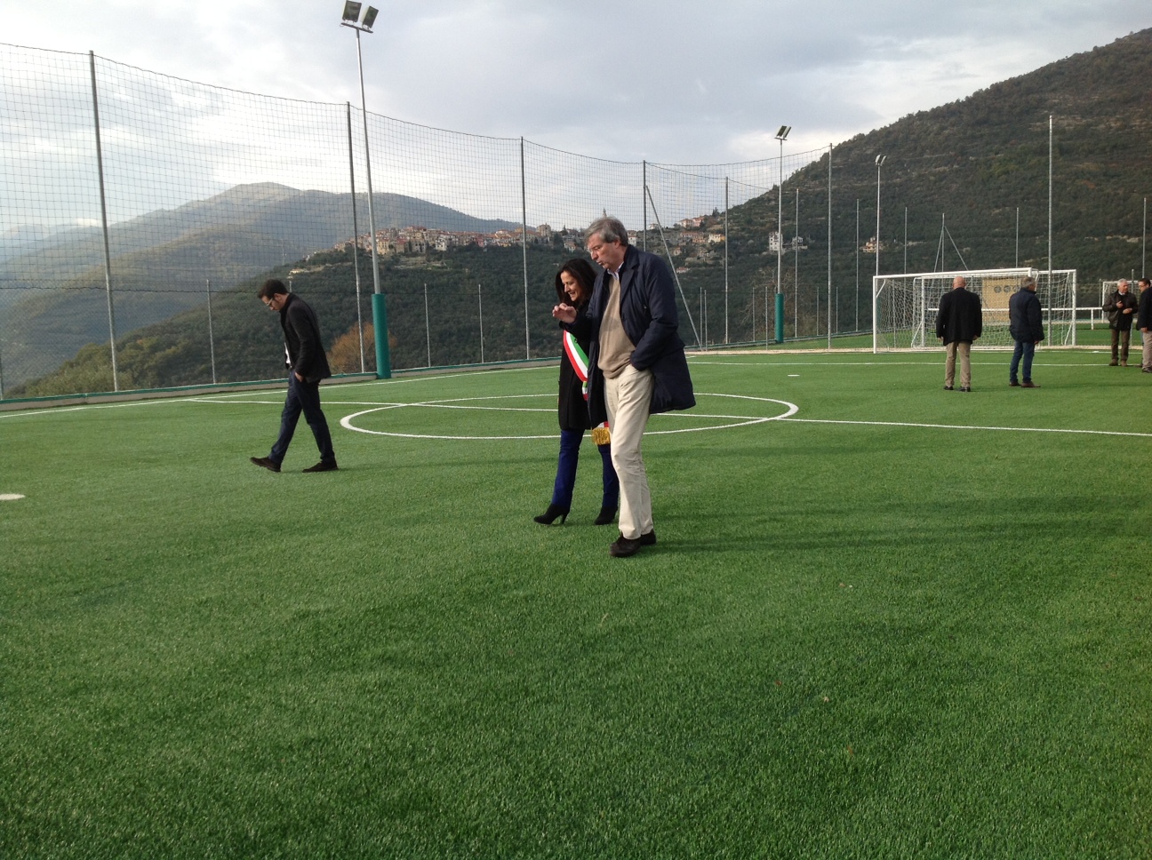 Chiusanico – Doppio evento questo pomeriggio nel piccolo comune della valle Impero. Alla presenza del Presidente della Regione Claudio Burlando, dell’assessore alle infrastrutture Raffaella Paita (candidata alle primarie del centrosinistra), dell’assessore all’agricoltura Giovanni Barbagallo, dei consiglieri regionali Giancarlo Manti e Massimo Donzella oltre che al sindaco di Chiusanico Nicla Tallone, è stata inaugurato il nuovissimo impianto sportivo composto da due campi da calcetto a 5 (sul quale è possibile praticare anche il tennis) e da un campo da petanque.