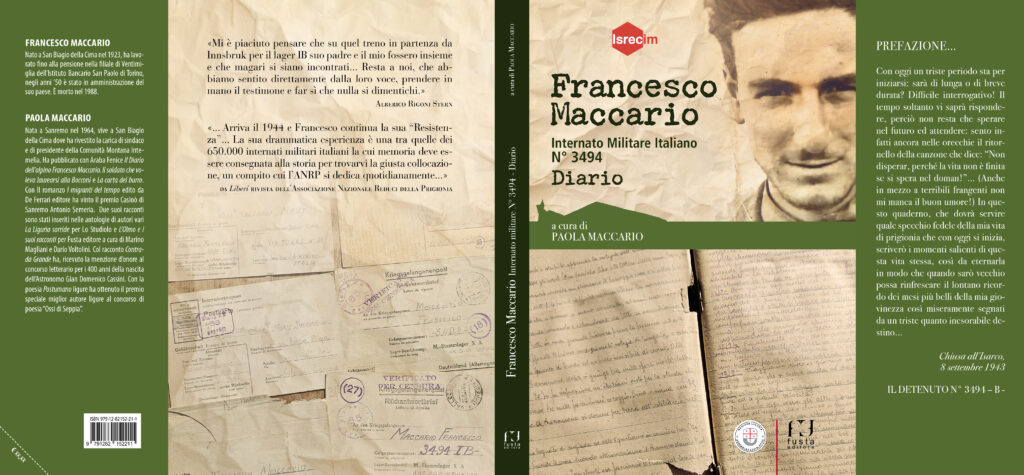 In occasione della Giornata della Memoria, l’Istituto Storico della Resistenza e dell’Età Contemporanea di Imperia presenta il nuovo libro, promosso insieme all’Assemblea legislativa della Regione Liguria, intitolato “Francesco Maccario Internato militare Italiano N° 3494 – Diario” a cura di Paola Maccario (Fusta Editore).