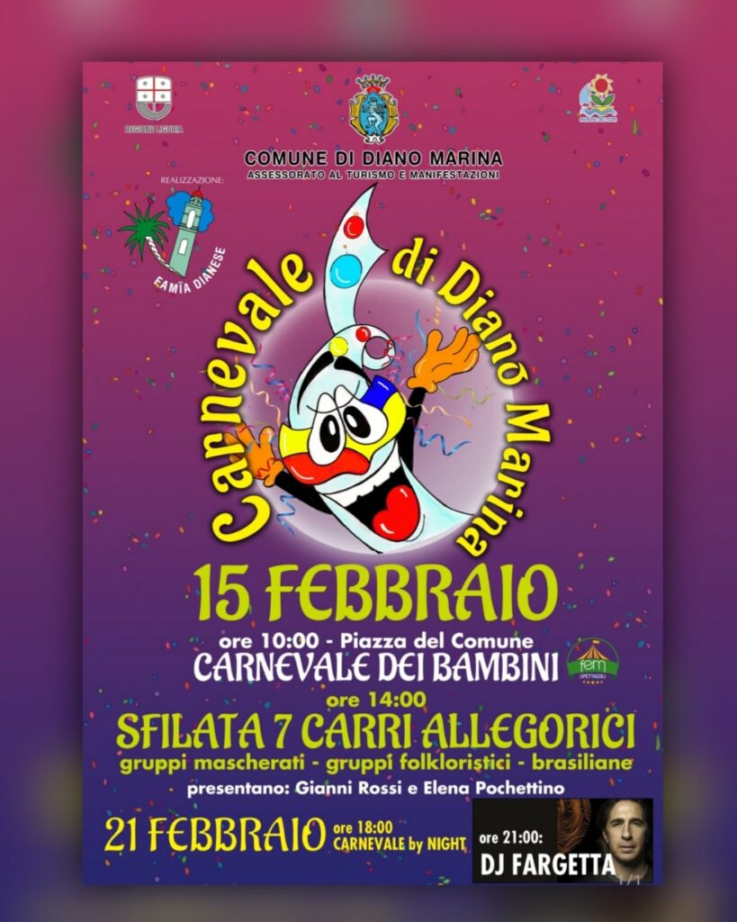 Il Carnevale di Diano Marina, come ogni anno, sarà a cura della Famïa Dianese, nei confronti della quale il Comune ha stanziato la somma di 35.000,00 euro come contributo economico per l’organizzazione dell’evento.