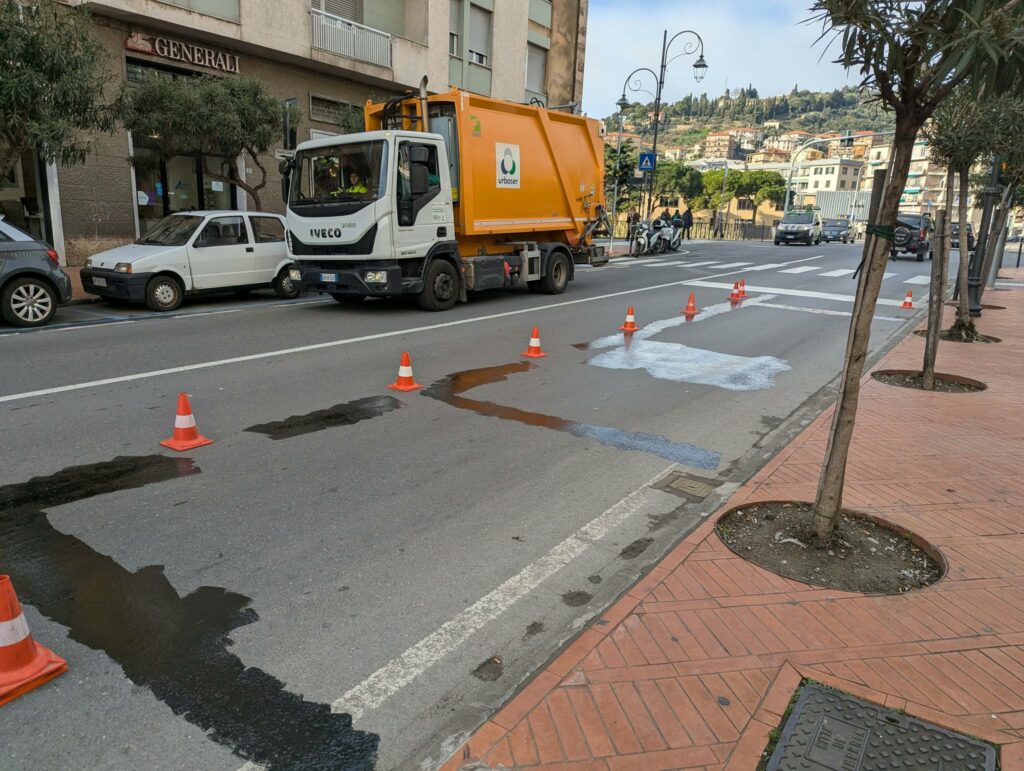 Nonostante la rimozione della pensilina da parte di Riviera Trasporti, gli utenti hanno continuato a utilizzare la fermata. Per questo motivo, questa mattina, 30 gennaio, sono state cancellate le strisce sull’asfalto, eliminando di fatto ogni traccia. Sul posto, per regolare il traffico durante l’intervento, la Polizia Locale di Imperia.