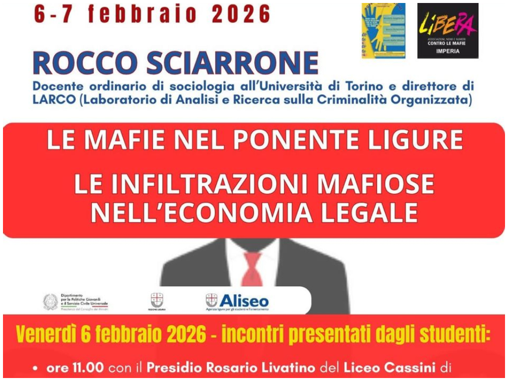 L’iniziativa, organizzata dal Liceo Vieusseux in collaborazione con Libera Imperia – Associazioni, nomi e numeri contro le mafie, si inserisce nell’ampio percorso di Educazione Civica e legalità avviato dall’istituto. Dopo gli incontri con magistratura, forze dell’ordine e operatori del sistema penitenziario, l’attenzione si concentra ora sulle mafie “silenziose”, lontane dai riflettori dei grandi processi mediatici.