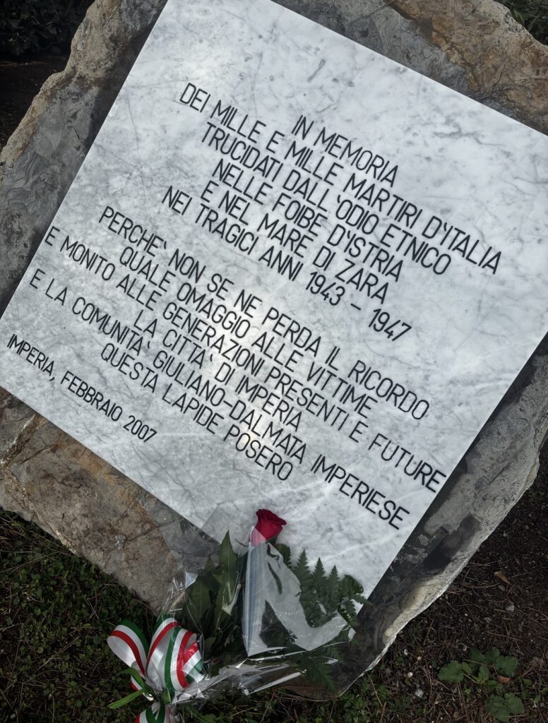 Oggi, Giorno del Ricordo, una delegazione di Fratelli d’Italia Imperia composta dai dirigenti Maurizio Falconi, Antonello Alìas e Alessandro Alessandri ha deposto una rosa sul cippo dedicato ai Martiri delle Foibe presso i medesimi giardini in viale Matteotti.