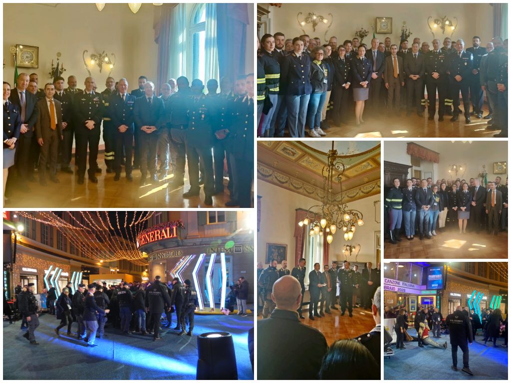 È stato evidenziato il fondamentale lavoro della Città ospitante la manifestazione canora, in modo particolare nella figura del Sindaco, della Giunta e del Consiglio Comunale, nonché del Comandante della Polizia Locale Fulvio Asconio e delle altre articolazioni amministrative, come esponenti di tutto il sistema cittadino, che, in piena sinergia, hanno contribuito alla gestione dei turisti ed alla continuità delle attività commerciali, in particolare quelle ricomprese nelle “bolle” di sicurezza, nel rispetto delle direttive impartite dal Prefetto nell’ambito del Comitato di Ordine e Sicurezza Pubblica.