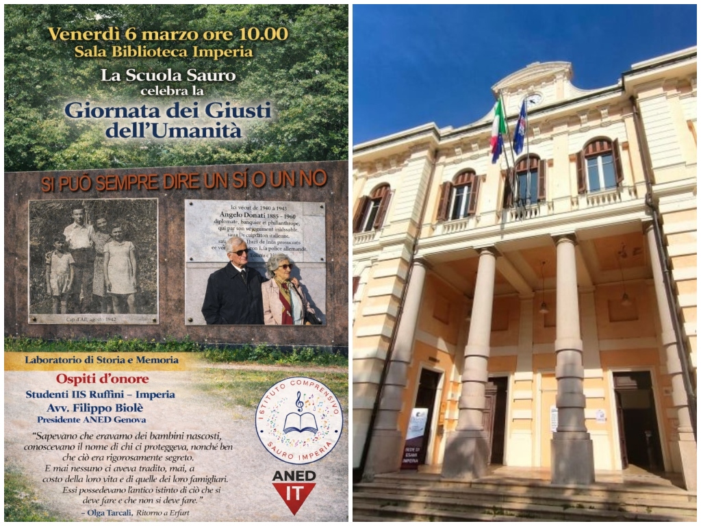 Venerdì 6 marzo alle ore 10.00, presso la Sala Convegni della Biblioteca Civica di Imperia, gli studenti delle classi 3F e 3N della Scuola secondaria di primo grado Sauro celebreranno la Giornata dei Giusti dell’Umanità.