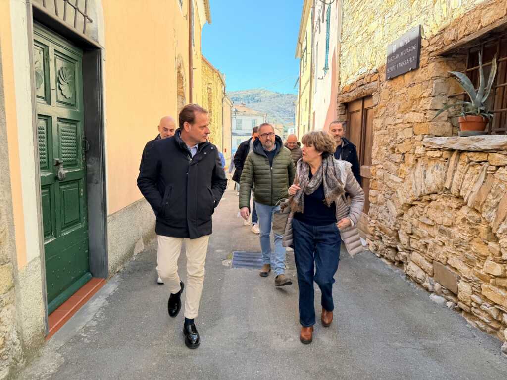 L’assessore regionale alla Rigenerazione urbana Marco Scajola, insieme alla sindaca di Lucinasco Marilena Abbo, ha effettuato un sopralluogo ai lavori di rigenerazione urbana nell’area di salita Costa.