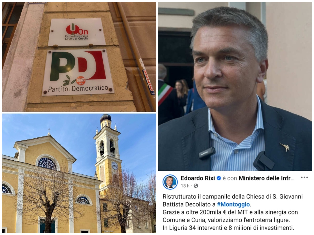 “8 milioni e mezzo di euro in tre anni per il restauro di edifici di culto e beni culturali: lo ha annunciato in pompa magna il vice ministro Edoardo Rixi per rimarcare il suo impegno per la Liguria. Francamente non è questo il compito di chi deve occuparsi di strade, ferrovie, infrastrutture, lasciando gli interventi sui beni architettonici a soprintendenze e ministeri competenti”. A parlare è il Circolo Pd Città di Imperia, che si unisce al coro di critiche delle opposizioni in regione nei confronti di quanto dichiarato nella giornata di ieri dal viceministro Rixi, presente all’inaugurazione della ristrutturazione del nuovo campanile della Chiesa di San Giovanni Decollato a Montoggio.