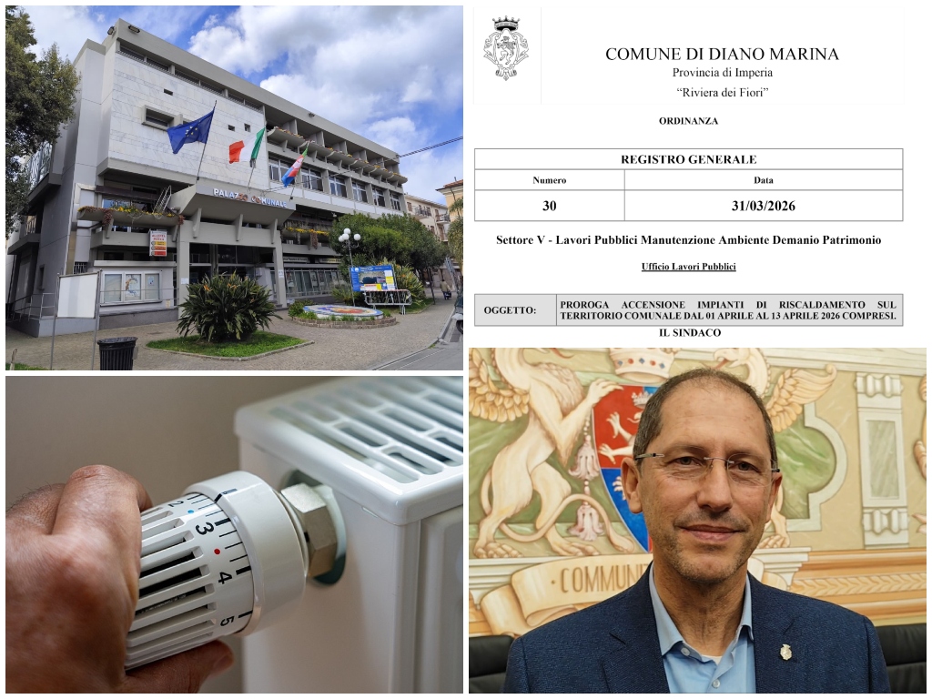 Analogamente ad altri comuni della provincia, come Imperia e San Bartolomeo al Mare, anche il Comune di Diano Marina ha disposto una proroga all’accensione degli impianti termici fino al 13 aprile compreso. I riscaldamenti potranno essere accesi per un massimo di 5 ore giornaliere liberamente articolabili nella fascia oraria 05:00 – 23:00.