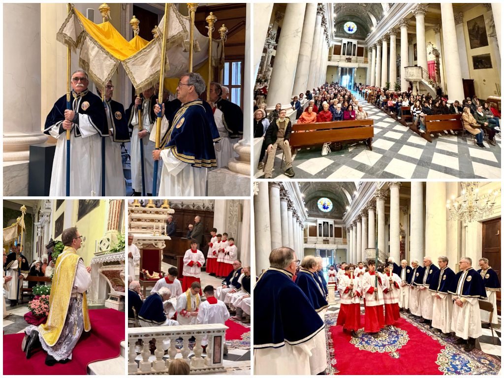 Prima dilavare i piedi a dodici membri della Confraternita parrocchiale della Ss. Annunziata, imitando con l’aiuto di Ministranti qualificati il gesto compiuto dal Signore in favore degli Apostoli, il Parroco Don Luca Gabriel si è affacciato sul senso profondo del Mistero significato dalla stessa lavanda dei piedi:“In quell’atto da schiavo è sotteso il vero Amore di cui ciascuno ha insopprimibile e struggente bisogno. Mentre infatti ognuno tende a conquistare l’amore dagli altri senza potervi mai trovare adeguata soddisfazione, Cristo si fa singolare schiavo che non toglie nulla e dona tutto col suo immenso Amore, finalmente corrispondente al cuore. Così saziata e liberata, raggiunta e trasformata dall’eterna predilezione del Signore, la vita d’ogni uomo può venire assimilata al dono gratuito e commosso che Gesù fa di sé; è la rivoluzione dell’Amore che vince il peccato e la morte, salvando il mondo dalla sua inesorabile rovina”.