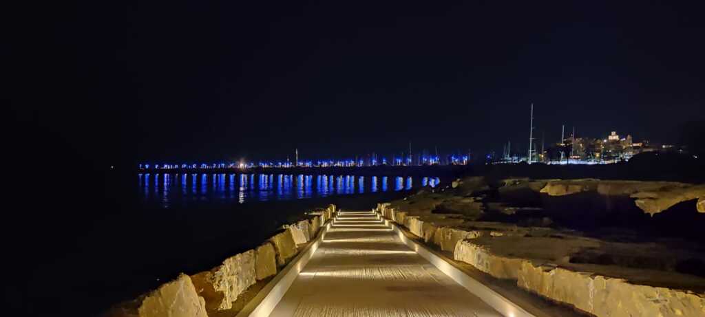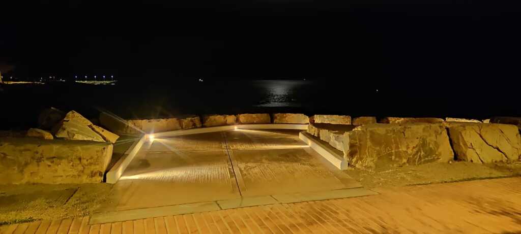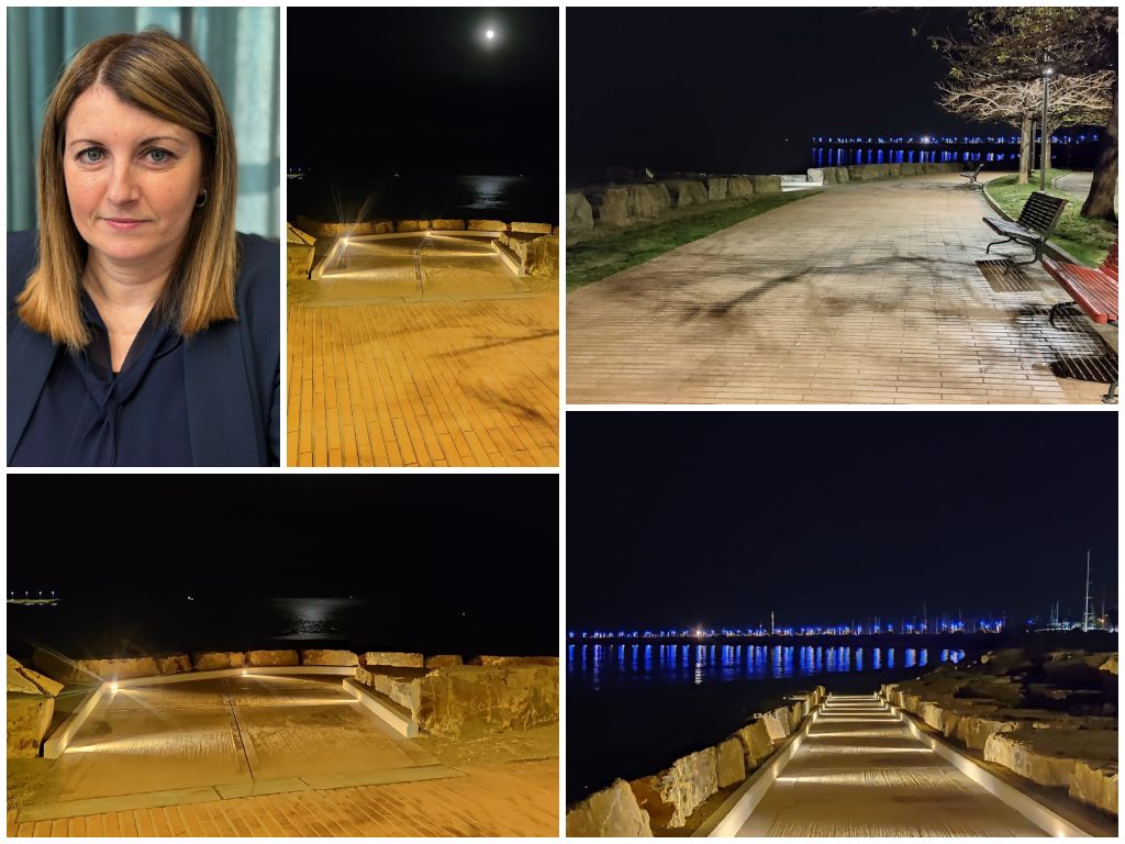 A rendere l’opera ancora più fruibile è il sistema di illuminazione a LED che, nelle ore serali, crea un’atmosfera suggestiva e garantisce la sicurezza lungo il percorso verso il mare.
