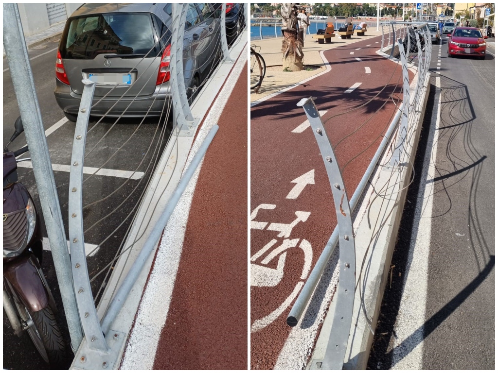 I corrimano della nuova passeggiata di Borgo Prino sono rimasti danneggiati in seguito allo scontro con un camion in retromarcia, avvenuto martedì. L’autista del mezzo, uscendo a marcia indietro dall’area antecedente al molo azzurro, non avrebbe visto la balaustra, centrandola in pieno. L’impatto, seppure di lieve entità, ha però fatto saltare diversi tiranti, anche distanti dal punto dell’incidente.