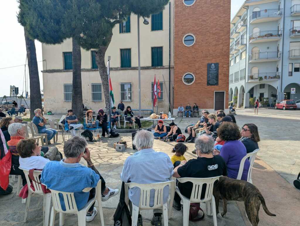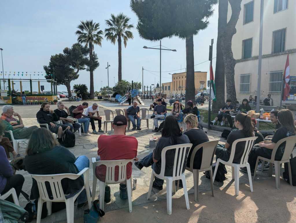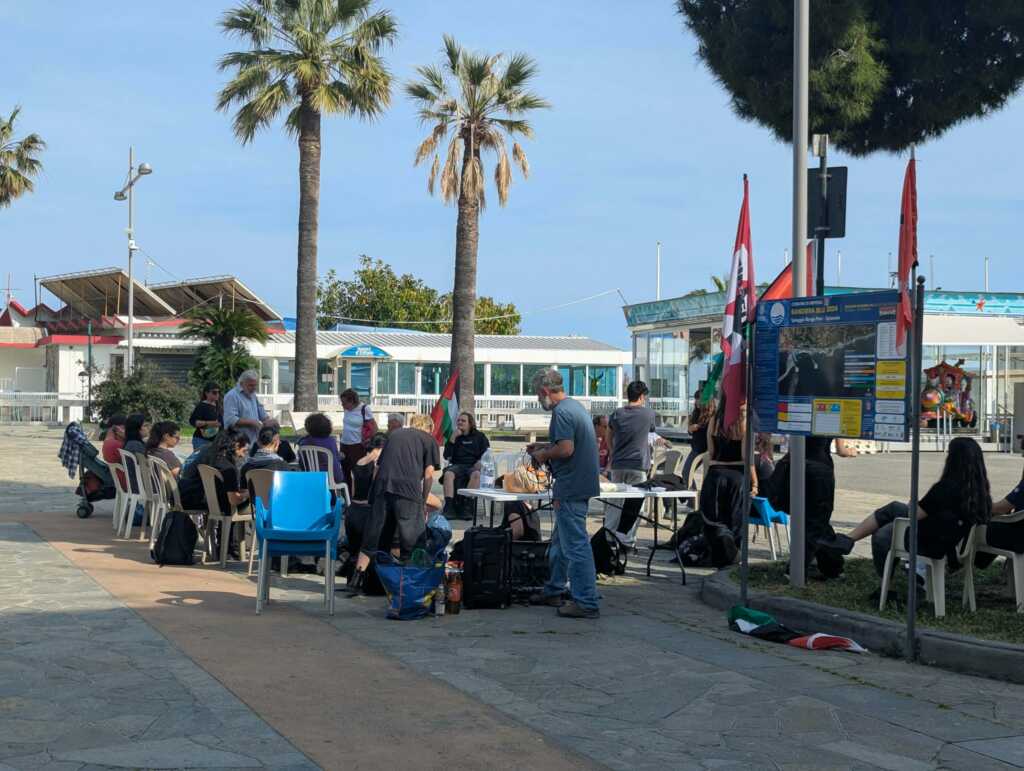Al microfono si sono alternati interventi che hanno contestato le guerre nel mondo e la “complicità dei governi fascisti nello sterminio di popoli e nel furto di terre”.