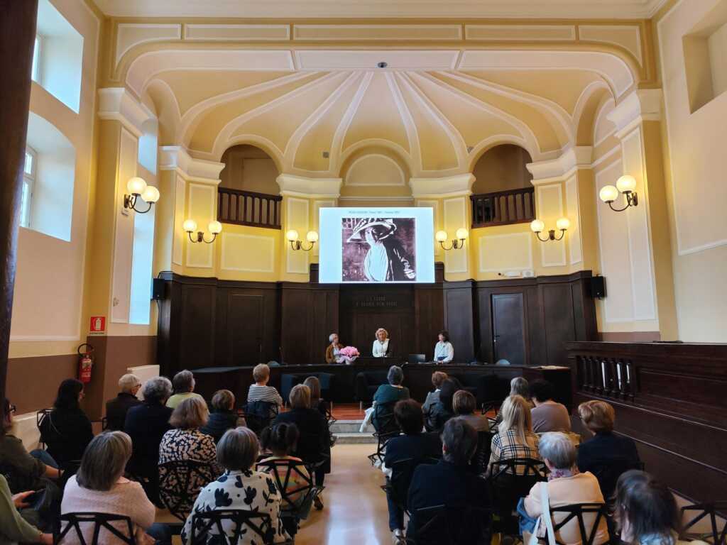 “Oggi faremo un’introduzione sulla vita straordinaria di questa donna – spiega Elisabetta Bartolotti – che nasce a metà Ottocento da una famiglia umile e arriverà a dei livelli di bravura e di cultura veramente notevoli nel campo della moda, principalmente, perché è stata l’ideatrice del ‘Made in Italy’ già al primi del Novecento. Ma poi, come vedremo, è stata anche una grande attivista per i diritti delle donne in campo lavorativo e in campo all’istruzione, come scrittrice, insegnante, grande pacifista, socialista, tantissime cose veramente“.