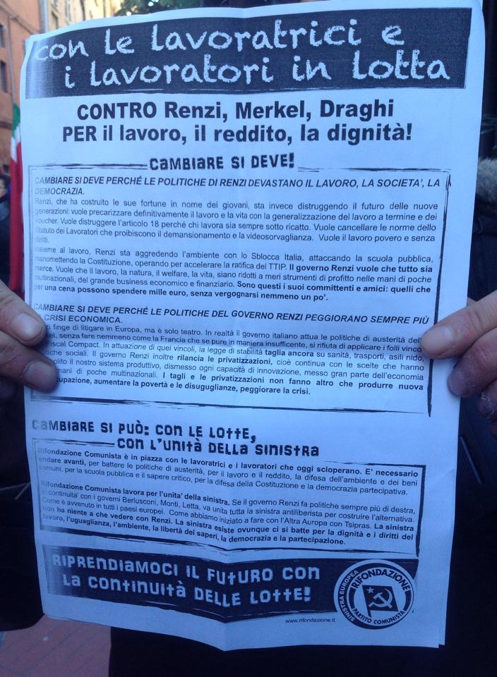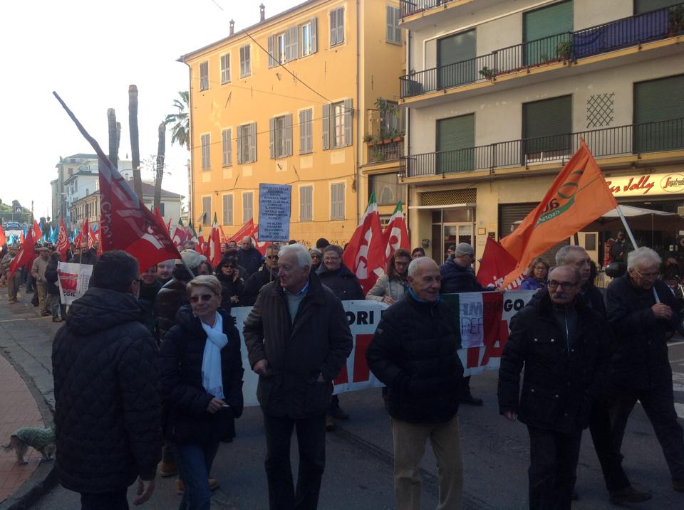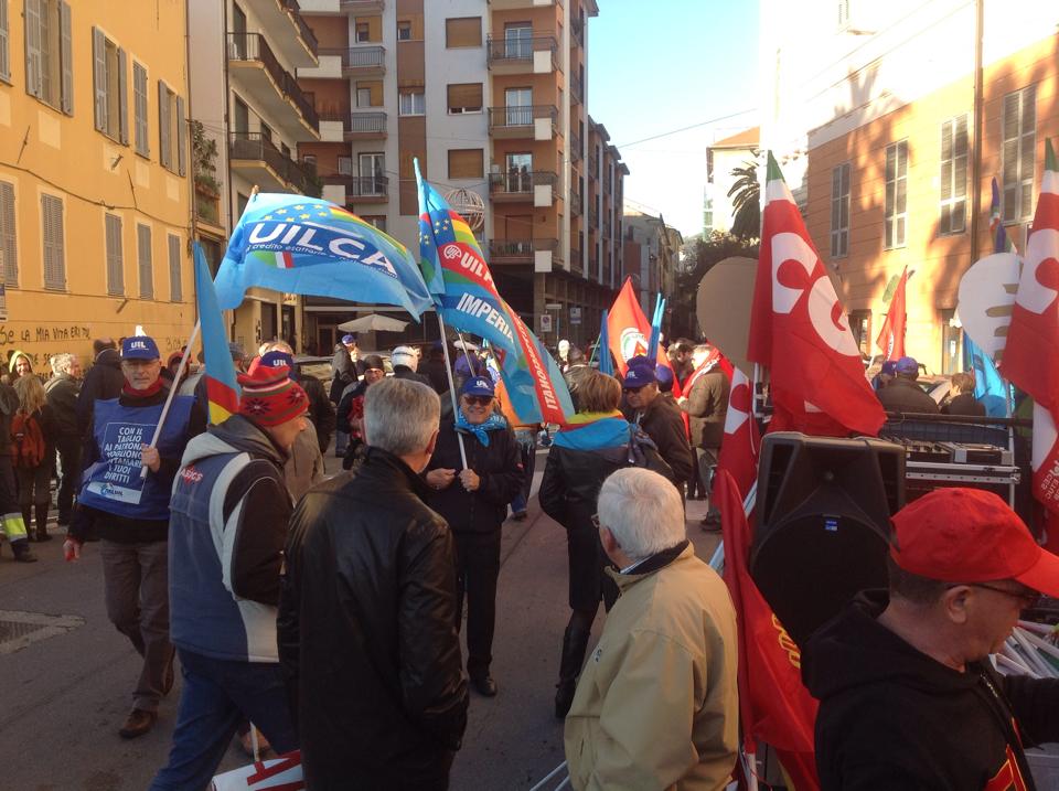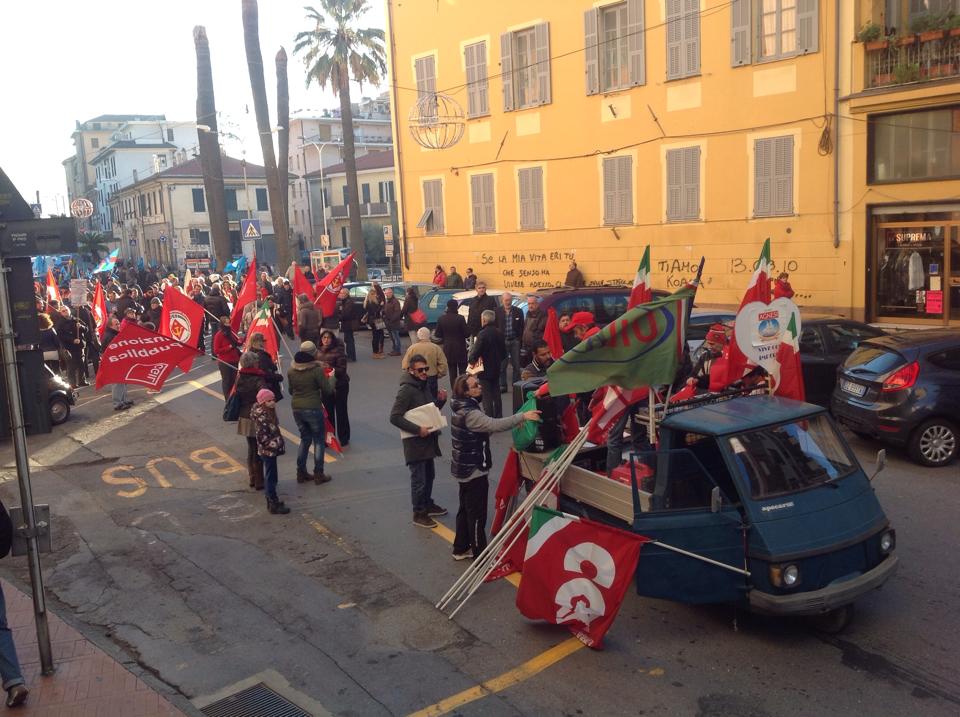 Imperia – Sono partiti in 200 poco fa da piazza Ulisse Calvi circa 200 manifestanti che hanno aderito alla chiamata della CGIL e della Uil nazionale per dire no al Jobs Act approvato dal Governo Renzi. Lavoratori di tutti i settori stanno manifestando per le vie della città in segno di protesta alla politica sul lavoro del Governo chiedendo le dimissioni del Premier Matteo Renzi.