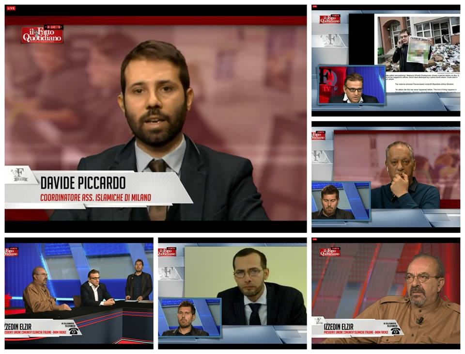 Il giorno successivo Piccardo è stato ospite del programma di approfondimento “TG2 Insieme” su Raidue (QUI e QUI). Il 12 gennaio è ospite di Bruno Vespa a “Porta a Porta” (QUI) assieme Matteo Orfini, presidente del PD, Paolo Romani, presidente senatori Forza Italia, Peter Gomez, direttore de “Il Fatto Quotidiano.it” e Riccardo Pacifici, presidente della Comunità Ebraica di Roma. Poi sulla Web TV de “Il Fatto Quotidiano” (QUI) con il vignettista Vauro, il direttore de “Il Fatto Quotidiano.it” Peter Gomez e il presidente dell’Ucoii Izzedin Elzir e su Sky TG24 (QUI e QUI) con l’Europarlamentare Lara Comi (FI) e Andrea Romano (PD). Piccardo è salito agli onori della cronaca anche per le sue dichiarazioni in sul diritto della comunità islamica milanese di avere dei luoghi di culto in contrapposizione alla legge regionale che limiterebbe tale diritto (QUI).
