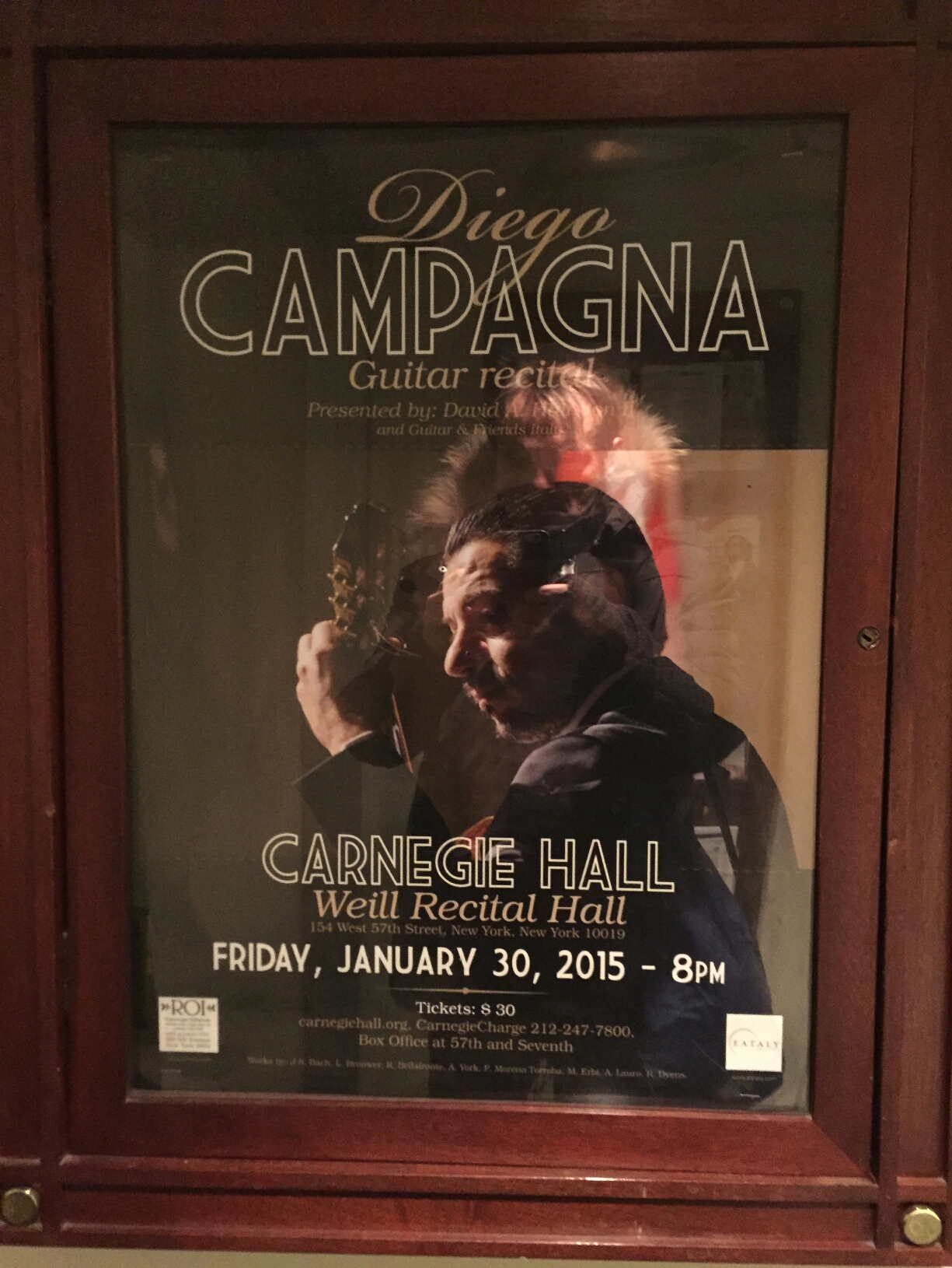 Diego Campagna riceve la standing ovation della leggendaria Carnegie Hall di New York. Sold out per il concerto nella Redwood Library & Athenaeum di Newport, la biblioteca più antica degli USA.Sta per concludersi il grandioso tour newyorkese e americano che vedrà Diego tornare in Italia la prossima settimana dopo quasi un mese di concerti e workshops per gli studenti di scuole ed università. Per il chitarrista imperiese applausi, acclamazioni e persino la standing ovation del teatro più importante al mondo, la leggendaria Carnegie Hall di New York, lo scorso 30 gennaio.