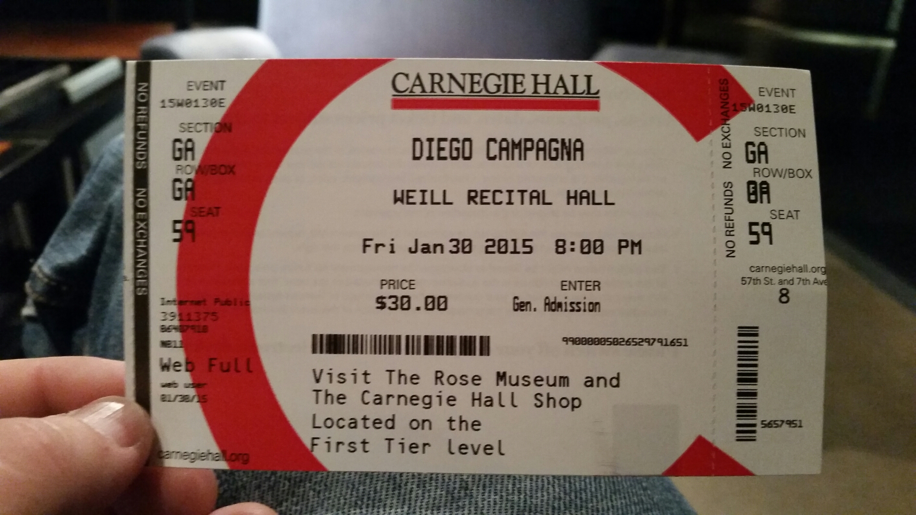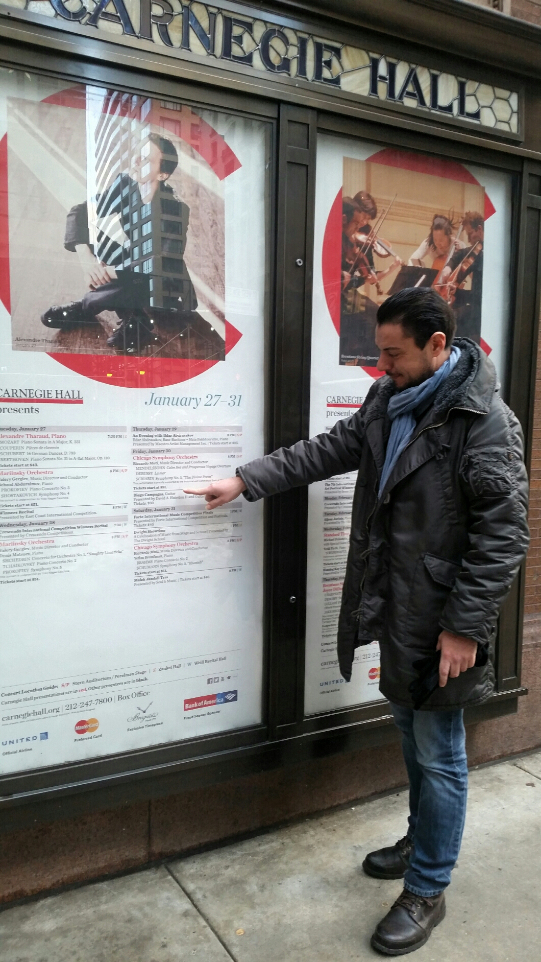 Davanti ad una platea piena Diego ha condotto in porto un’esibizione impeccabile tecnicamente e musicalmente commuovente che il variegato pubblico newyorkese ha salutato con un entusiasmo che è andato anche oltre le attese, “Ricevere la standing ovation della Carnegie Hall è stata una cosa incredibile, ancora di più se penso che in contemporanea con me, nello Stern Auditorium del teatro si stava esibendo Riccardo Muti con la Chicago Symphony Orchestra, non nascondo che mi sono molto commosso, il pubblico della Carnegie è abituato ad ascoltare i più grandi artisti del mondo, è una leggenda e soltanto il fatto di essere stato invitato per un recital era per me meraviglioso, figuriamoci una standing ovation; è davvero accaduta una cosa difficile da spiegare con le parole; vogliono assolutamente che ritorni e così sarà, non accade tutti i giorni”.