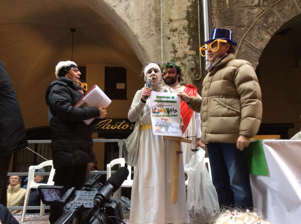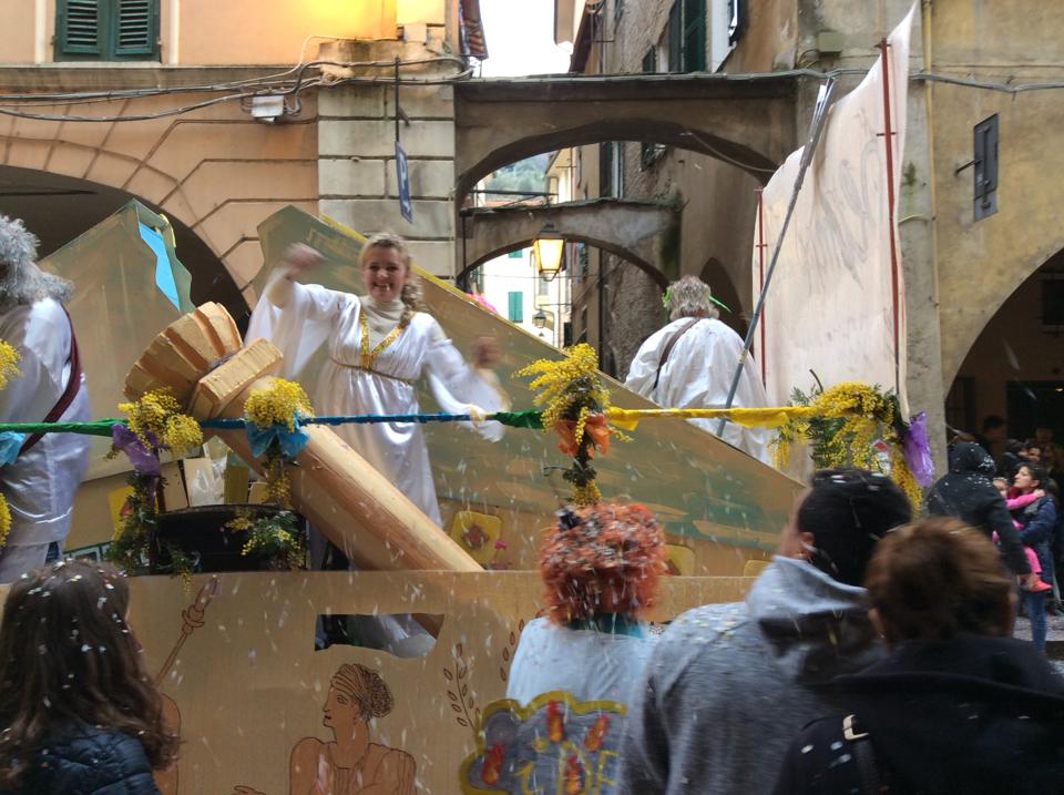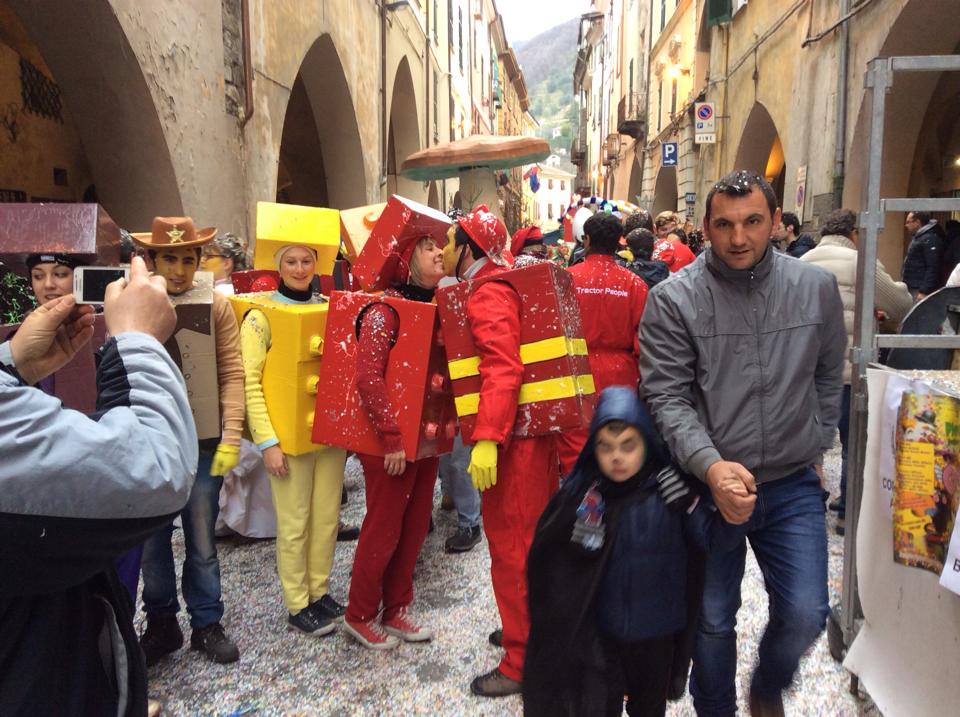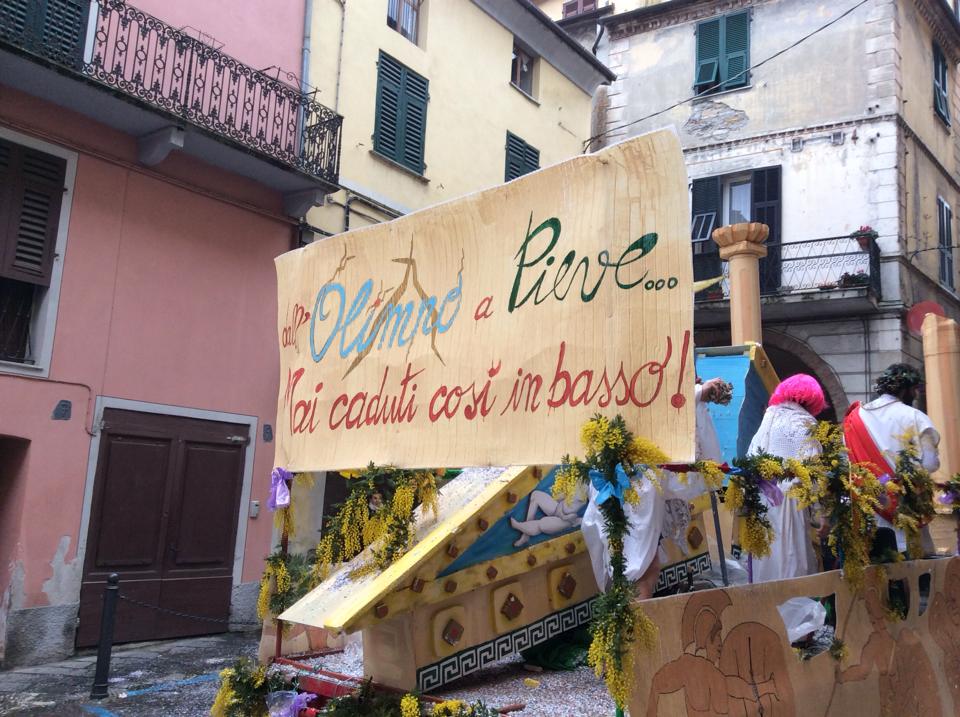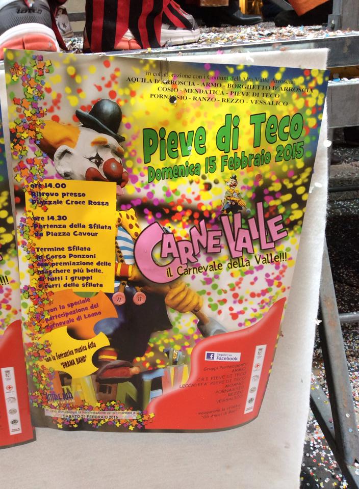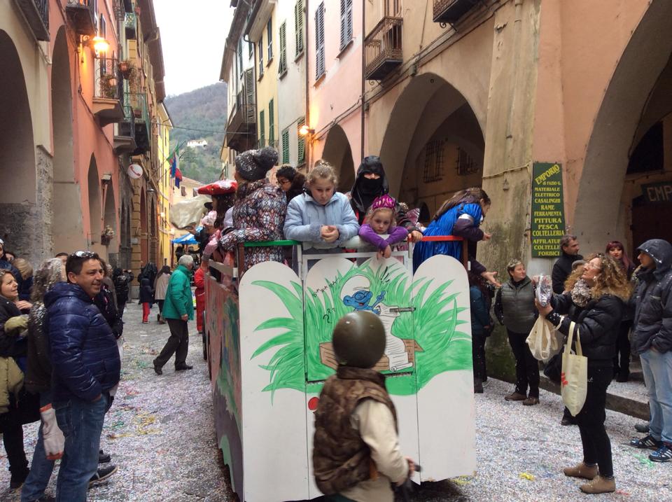 Centinaia di persone hanno preso parte questo pomeriggio a Pieve di Teco all’edizione 2015 del “Carnevalle”, il Carnevale della Valle, in collaborazione con i Comuni di Aquila d’Arroscia, Armo, Borghetto d’Arroscia, Cosio, Mendatica, Pieve di Teco, Pornassio, Ranzo, Rezzo e Vessalico. Alla sfilata hanno preso parte i carri di Armo, Pieve di Teco (Croce Rossa e Leccadefà), Moano, Pornassio, Rezzo e Vessalico. La sfilata, animata dalla musica della “Brama Band“, alla quale era presente anche il “Carnevaloa” di Loano, è stata inaugurata da “gli amici di Bacì”. La giuria ha decretato la vittoria del carro di Pornassio, polemico nei confronti della gestione della Riviera Trasporti.