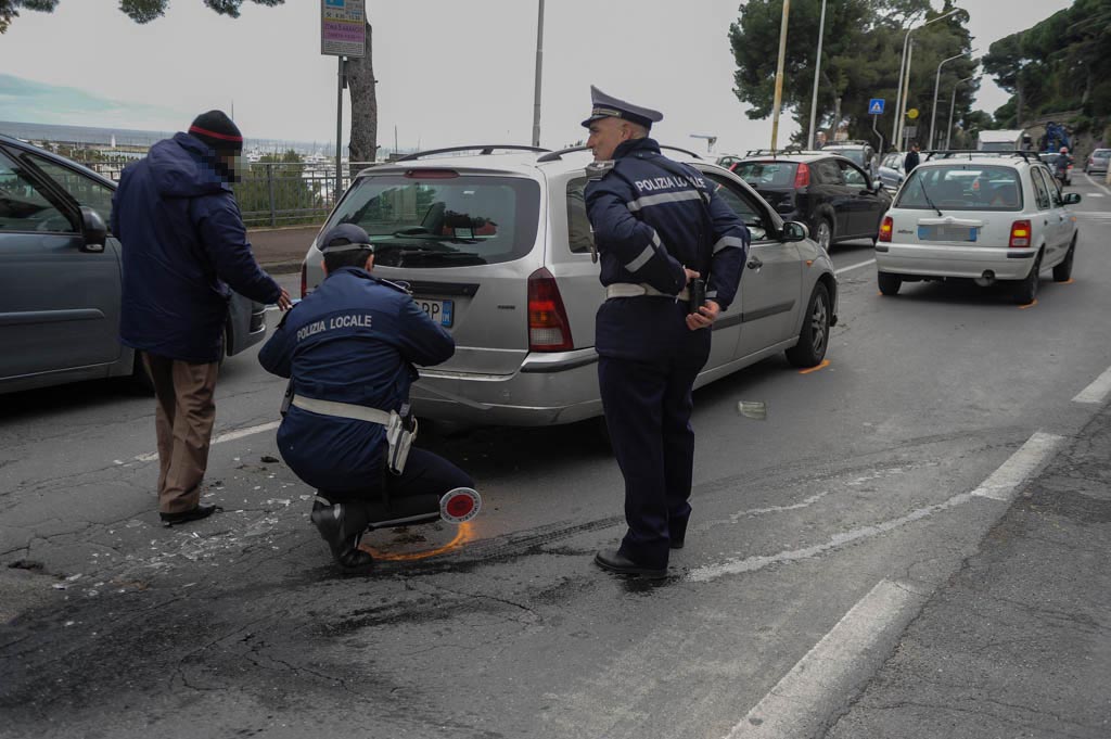 Tamponamento a catena nella tarda mattinata di oggi, lunedì 16 febbraio, in viale Matteotti a Imperia, proprio di fronte al Comune. Una Nissan Micra condotta da B.F., 49 anni, diretta a Porto Maurizio, ha rallentato (e non frenato bruscamente, come era parso invece in un primo momento), e, per causa ancora in fase di accertamento, è stata tamponata da una Focus con a bordo tre cittadini extracomunitari, a sua volta tamponata da una Citroen Ax condotta da S.B., 36 anni.