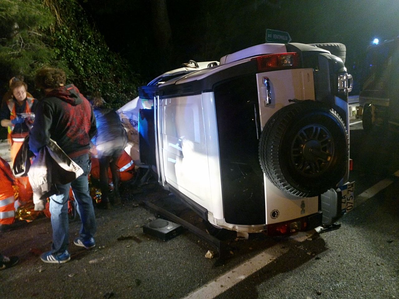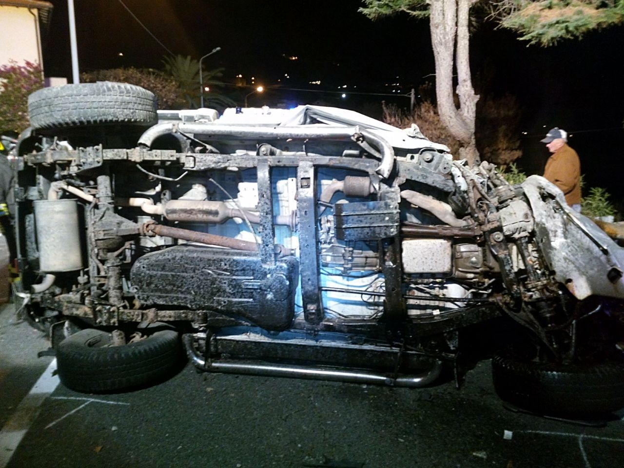 Imperia. Questa notte, intorno alle 5 nella zona degli Aregai, all’altezza del bivio per Cipressa, un 32enne di Taggia ha perso il controllo della sua auto, un suv bianco, ed è andato a schiantarsi contro un muretto di un’abitazione. L’impatto, forse avvenuto per un colpo di sonno o per una distrazione, è stato violentissimo e il giovane, M.F. è rimasto incastrato nell’auto che nell’urto si è cappottata.