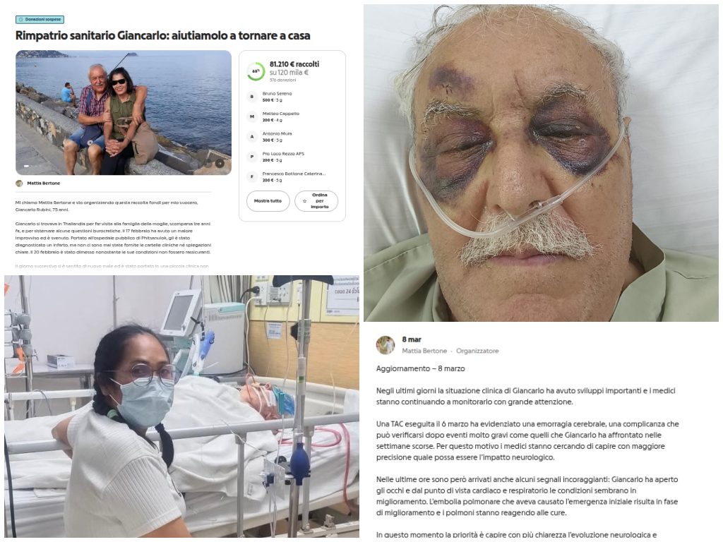 Malore in Thailandia: migliorano le condizioni di Giancarlo Rubini, raccolta fondi sospesa temporaneamente. “Ha aperto gli occhi” 10 Marzo 2026